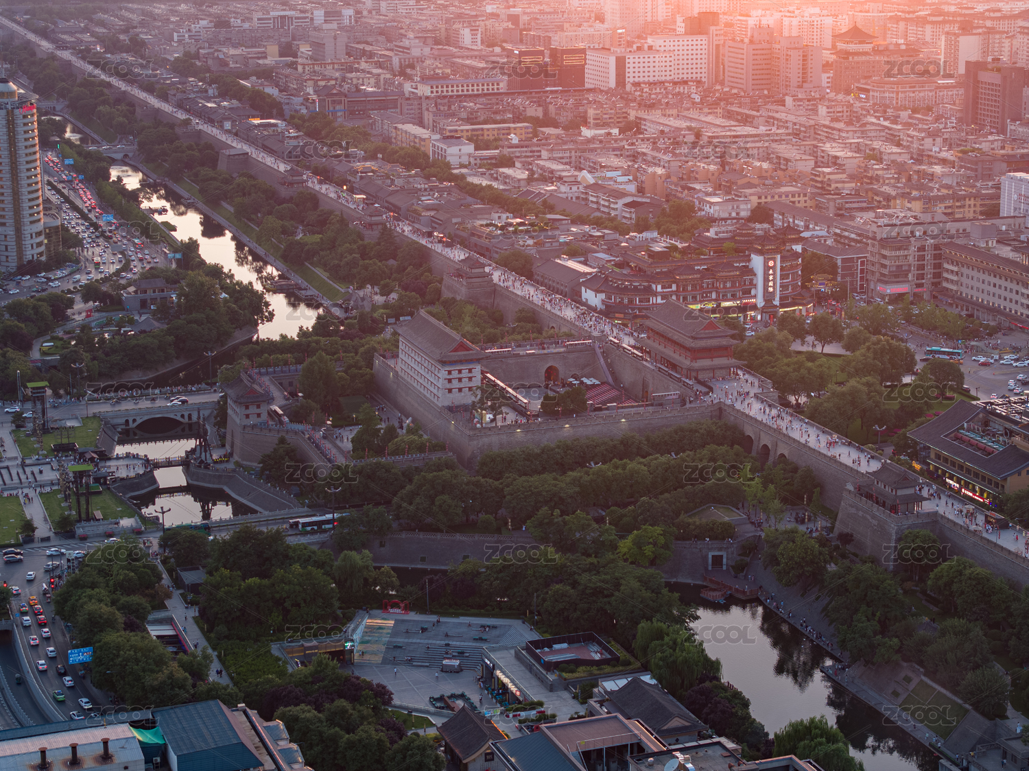 航拍西安城墻永寧門夕陽(yáng)城市風(fēng)光