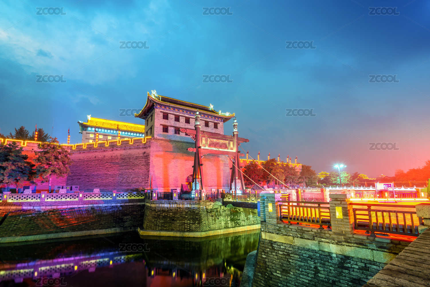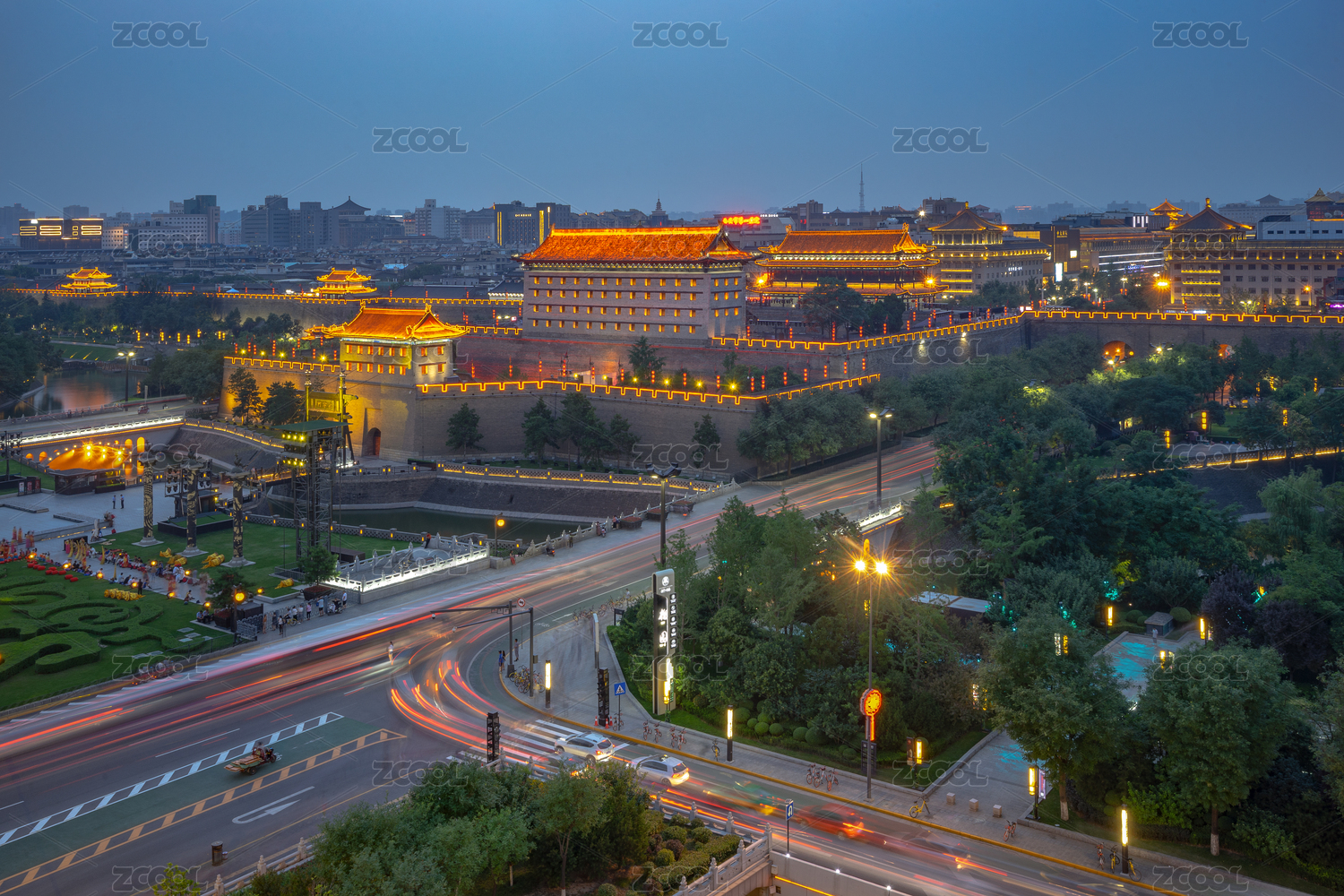 中國(guó)陜西西安城墻南門永寧門天際線夜景