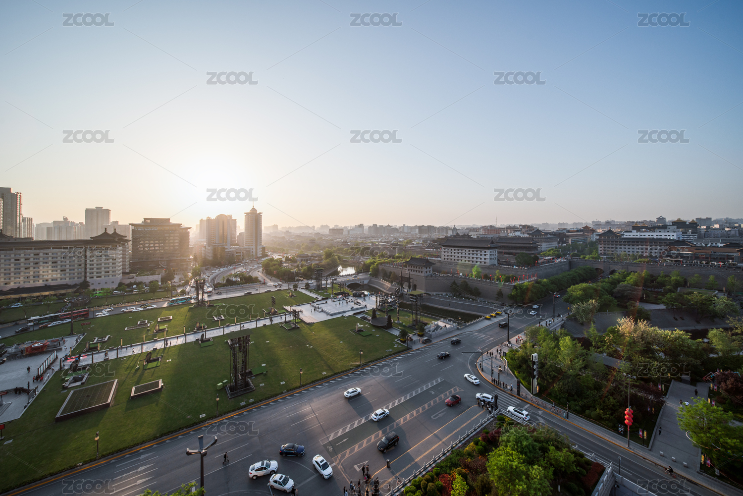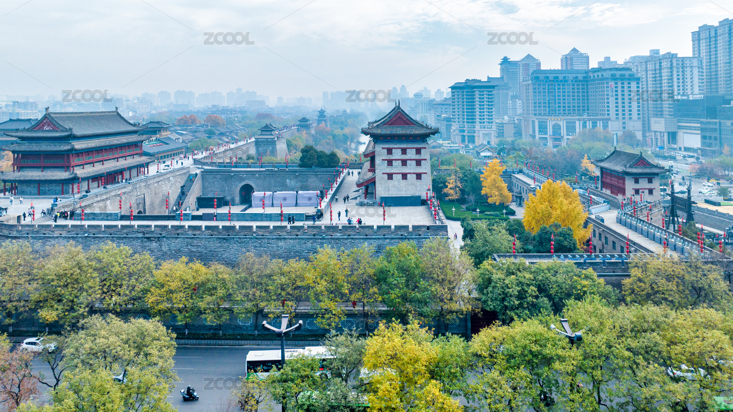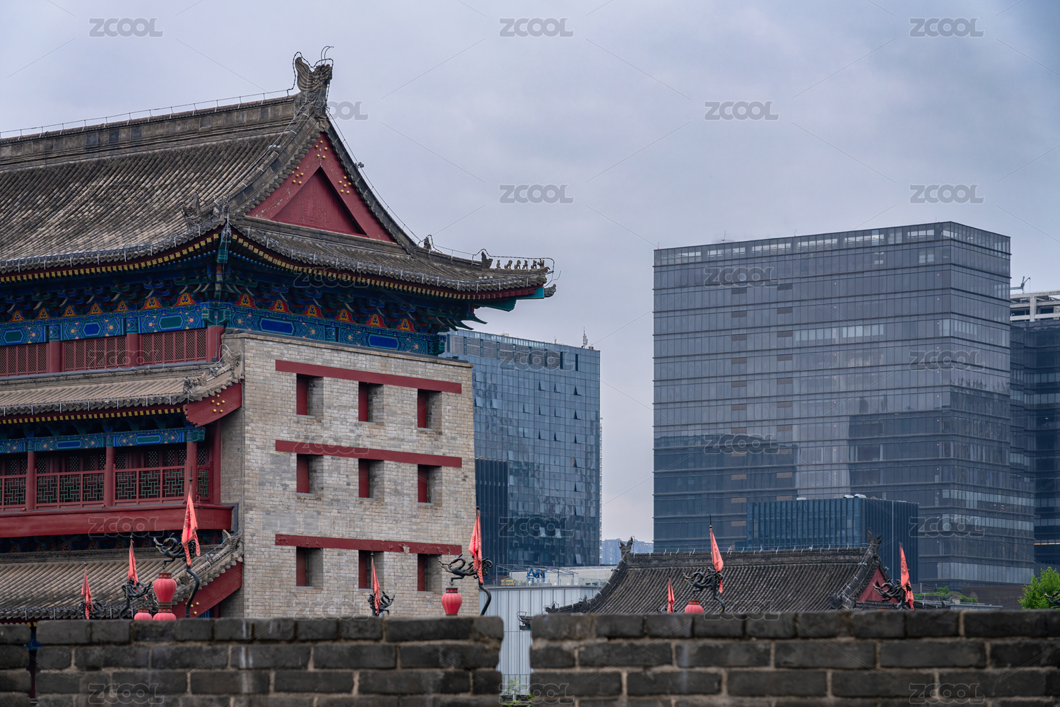 陜西西安城墻永寧門與現(xiàn)代建筑