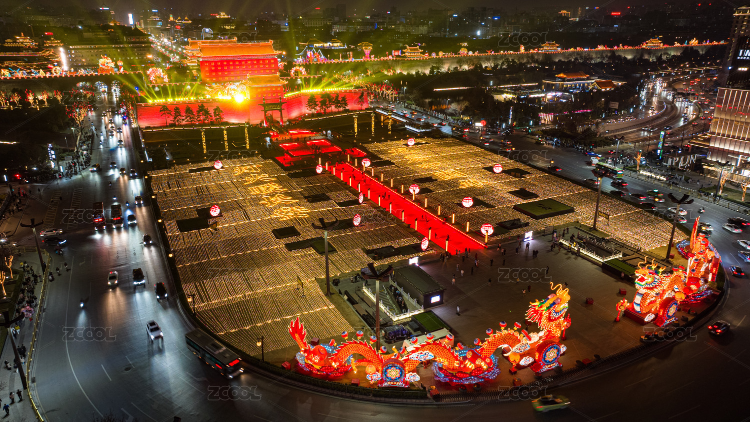 航拍西安城墻永寧門城市風(fēng)光夜景
