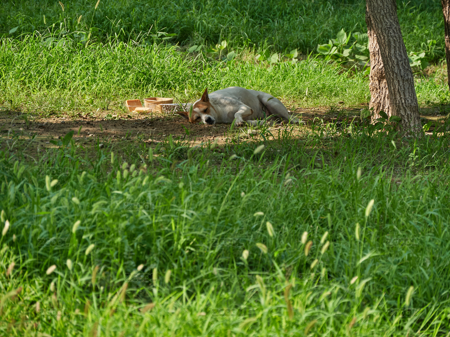 夏乏躺在河邊午睡的小男孩遠處有村莊
