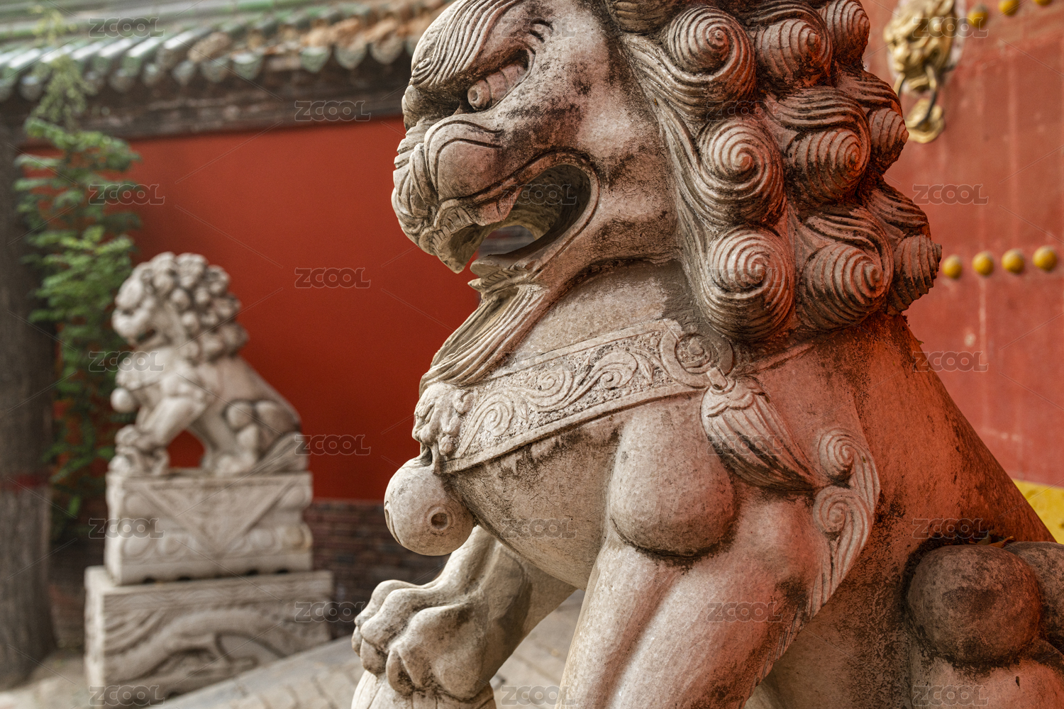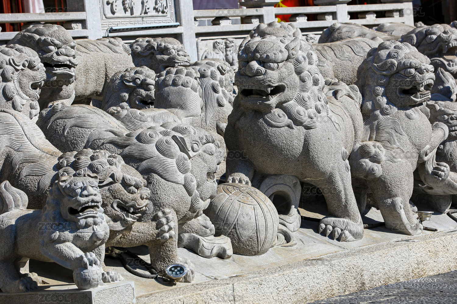中國(guó)山西太原崇善古寺門(mén)口的精美石獅