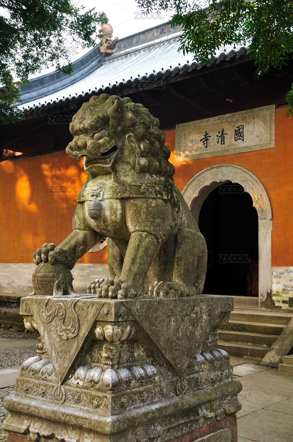 中國(guó)浙江杭州凈慈寺門(mén)口的石獅