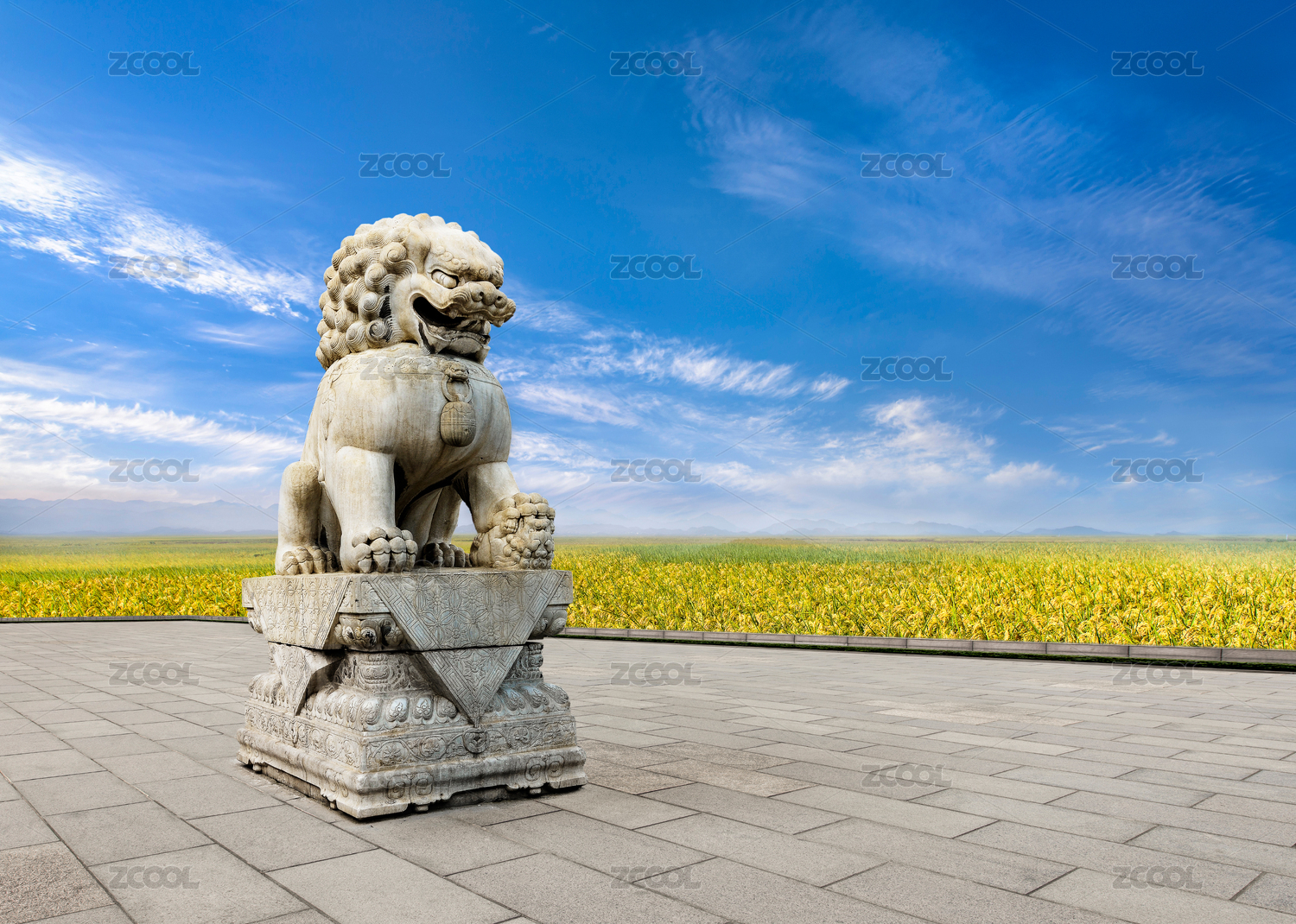 中國(guó)四川成都龍?zhí)端l(xiāng)城門(mén)前的石獅
