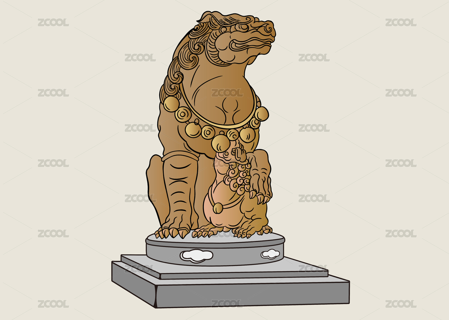 中國(guó)四川成都易園美術(shù)館前的石獅