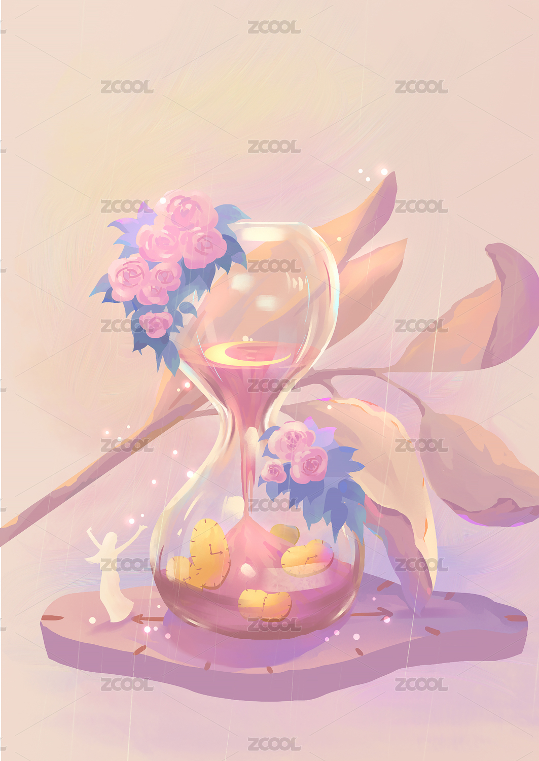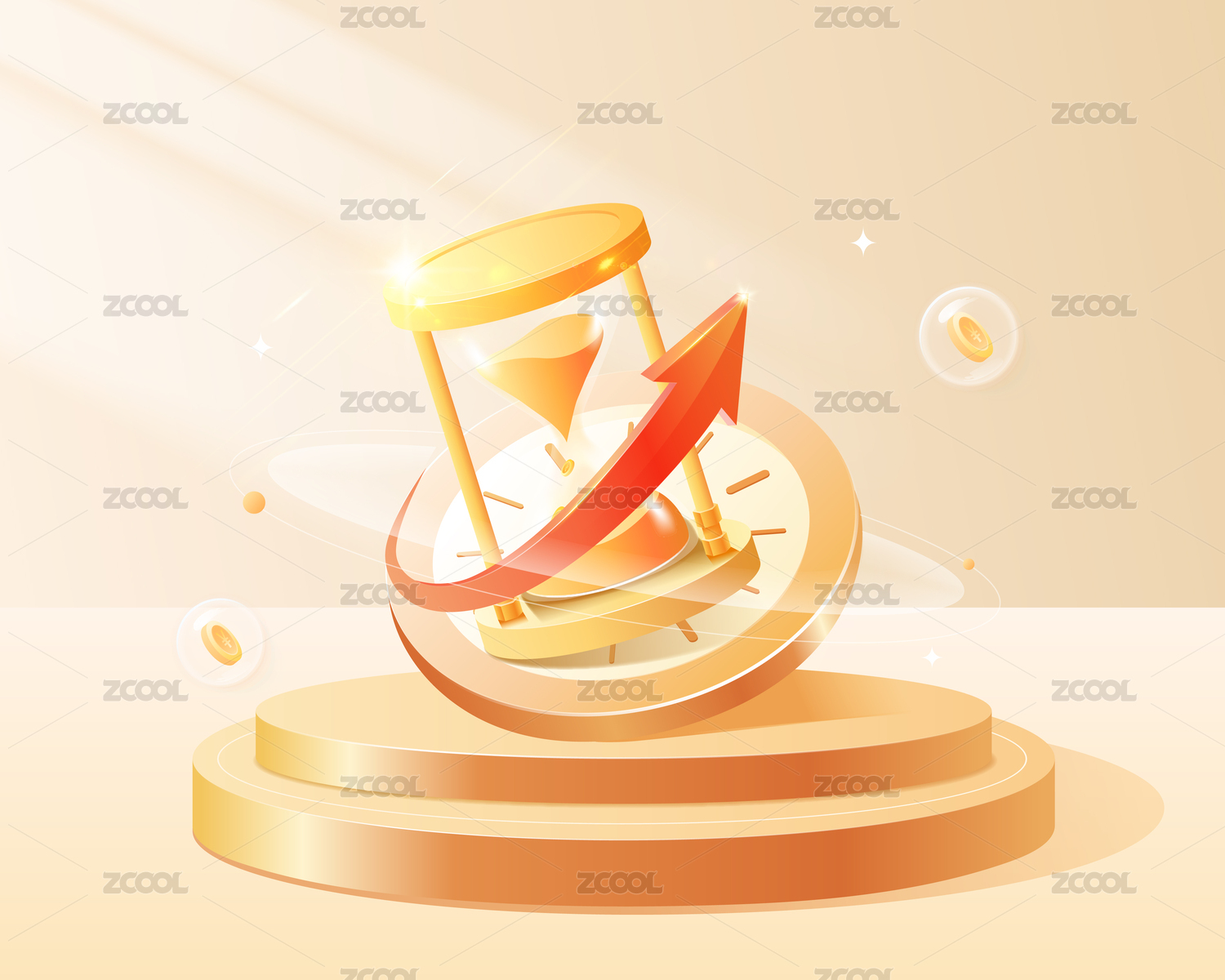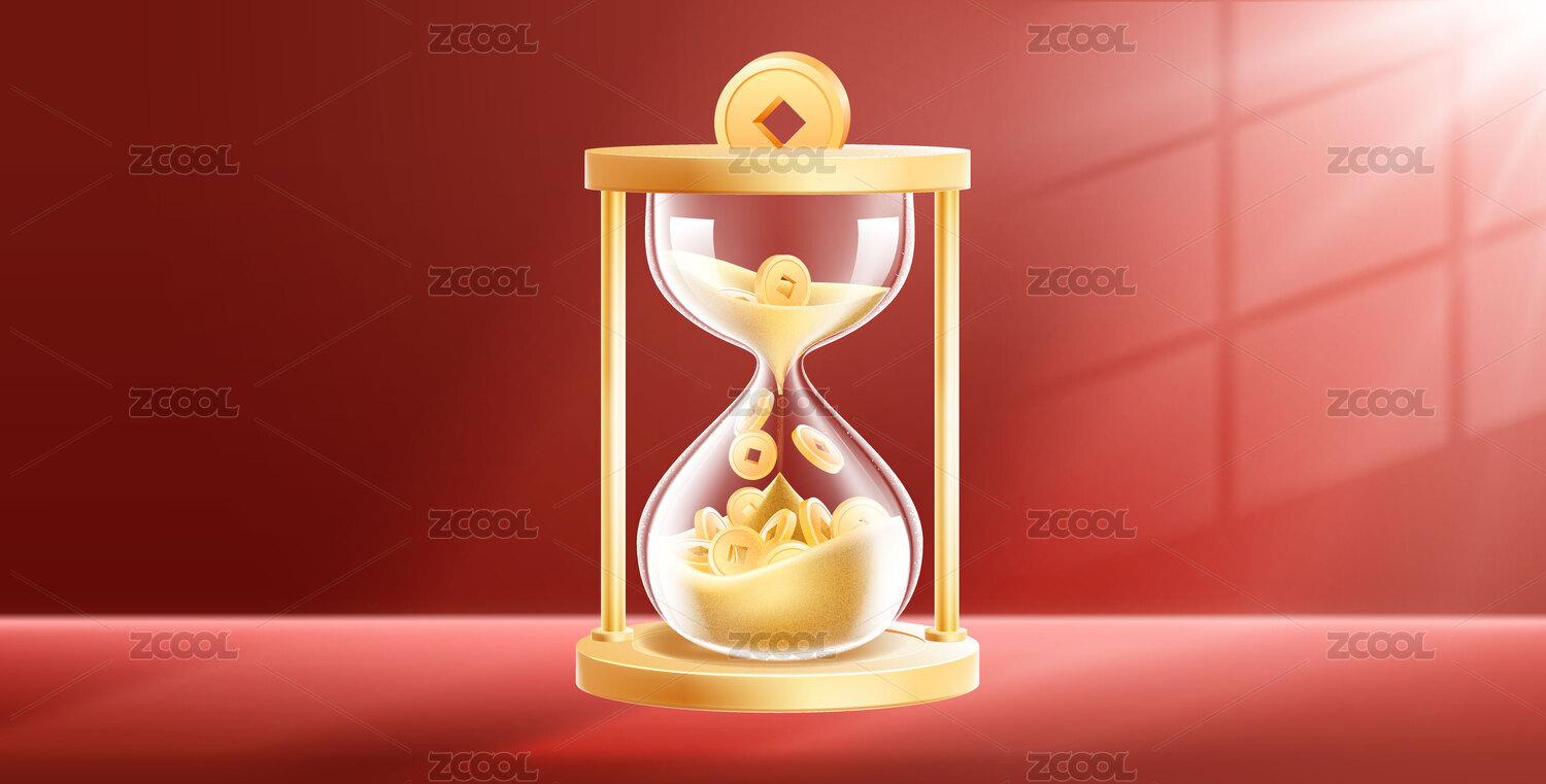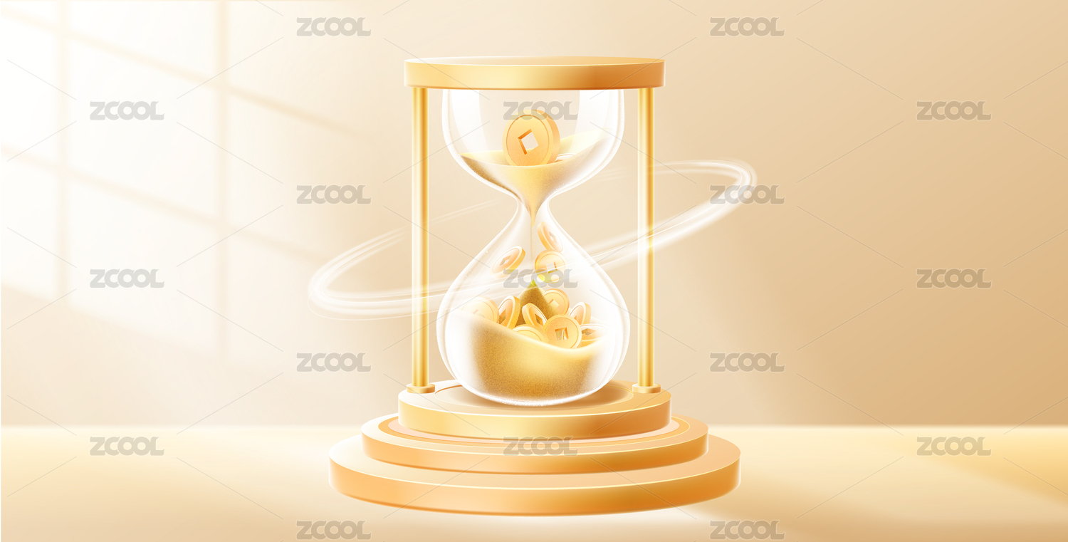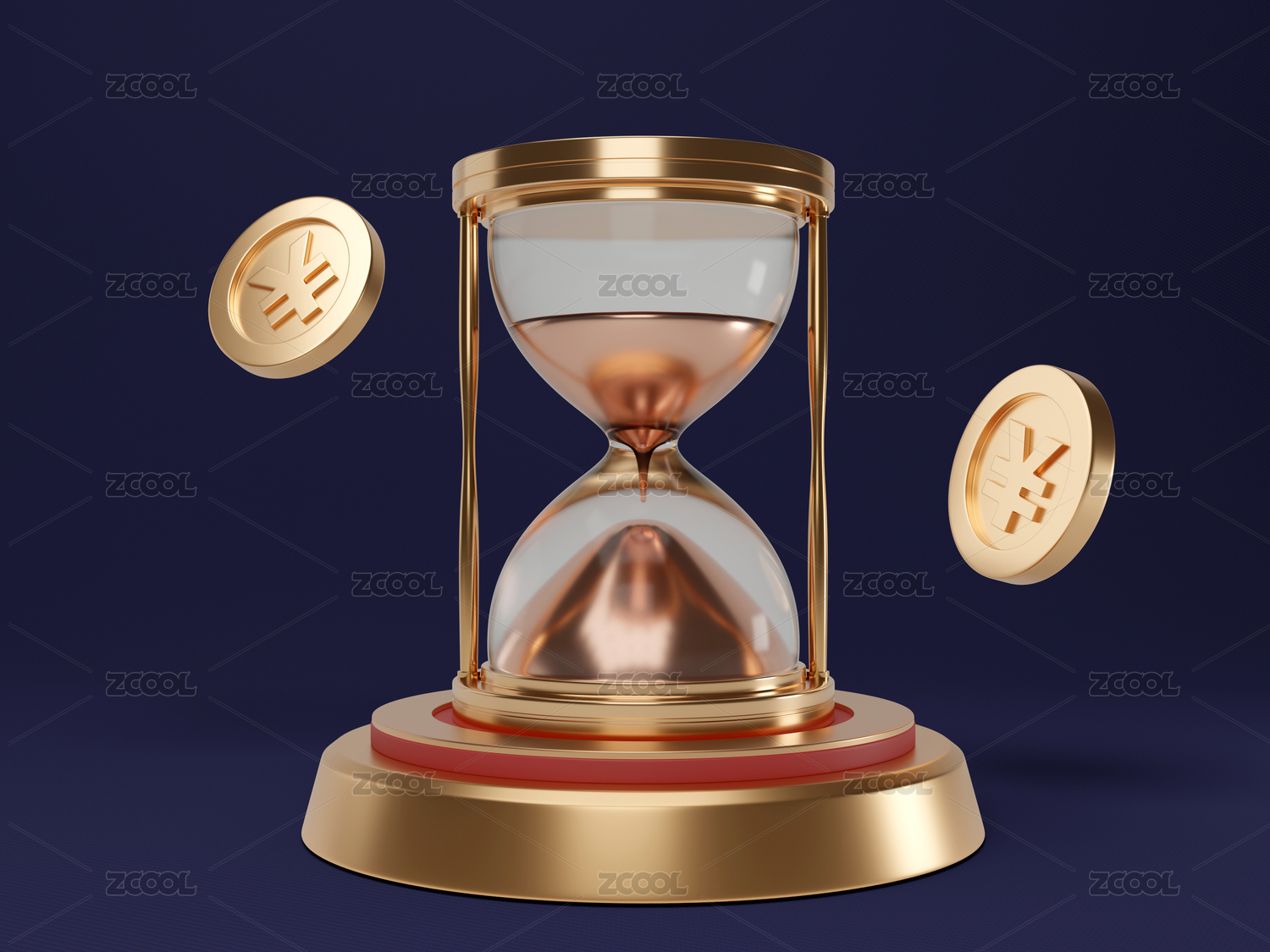 放在金色臺子上的時間沙漏創(chuàng)意素材