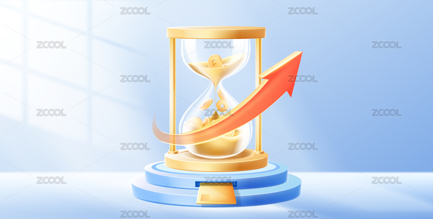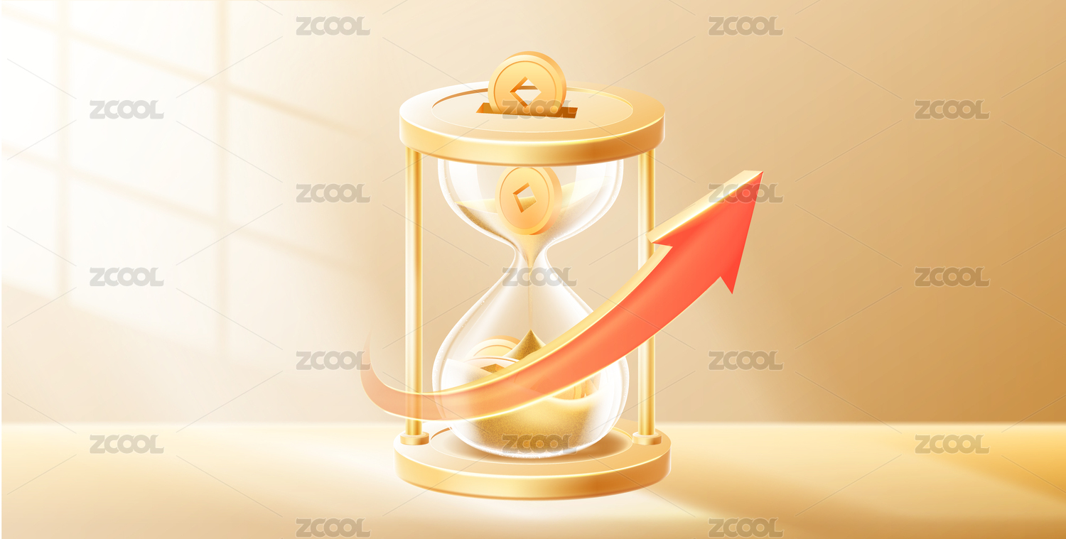 白色背景金色沙漏和禮盒創(chuàng)意商務素材