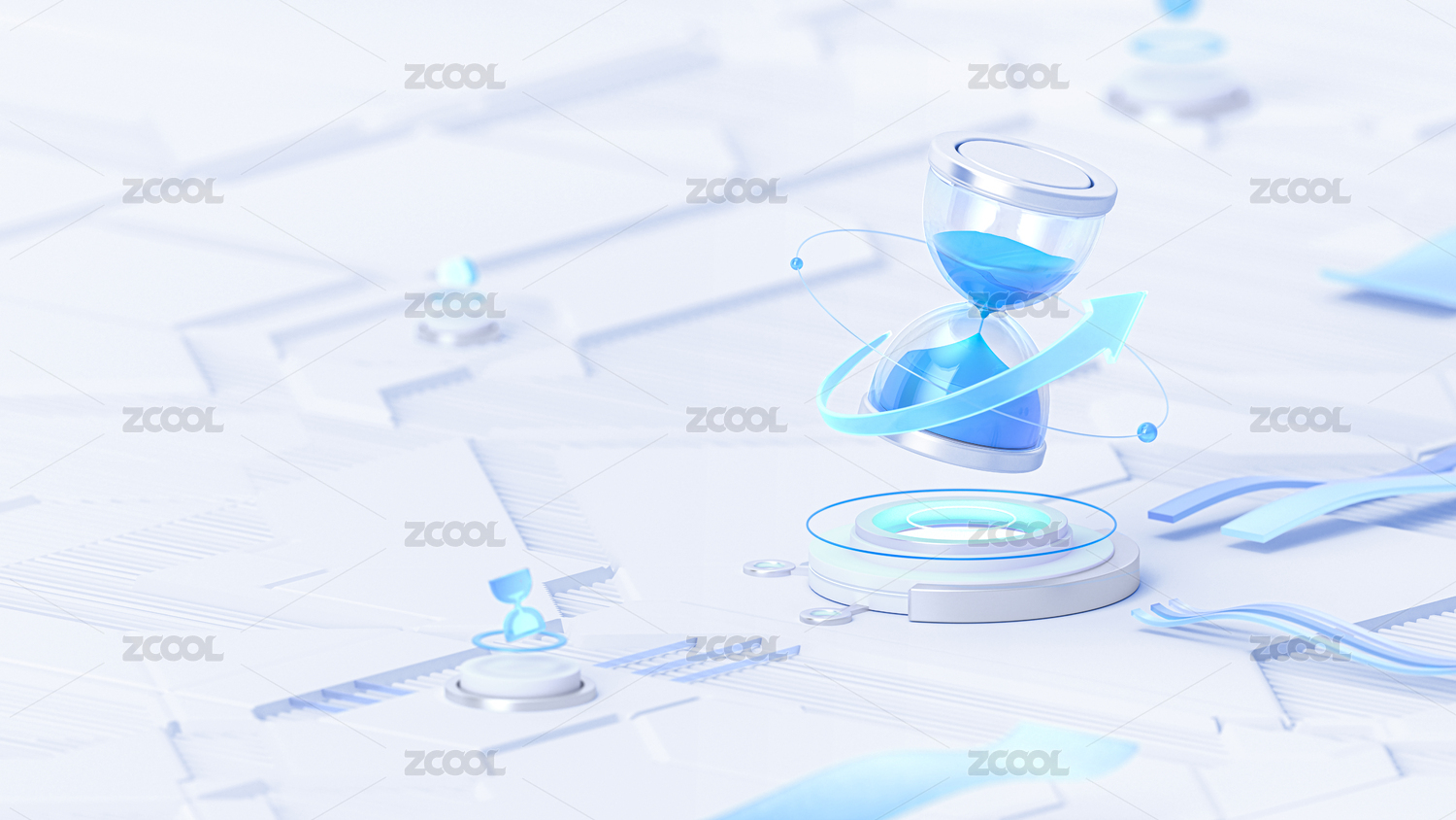 科技藍白沙漏倒計時智能概念場景3D渲染