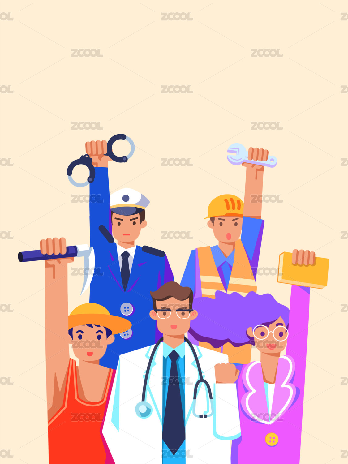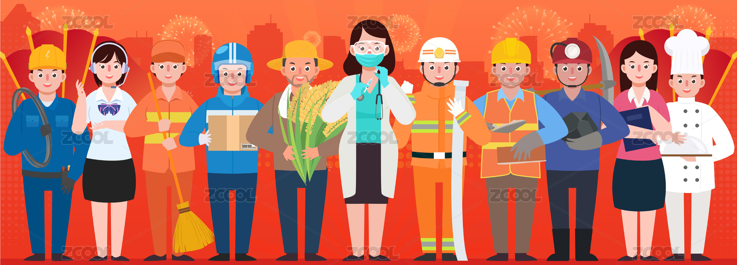 勞動節(jié)不同職業(yè)人物插畫