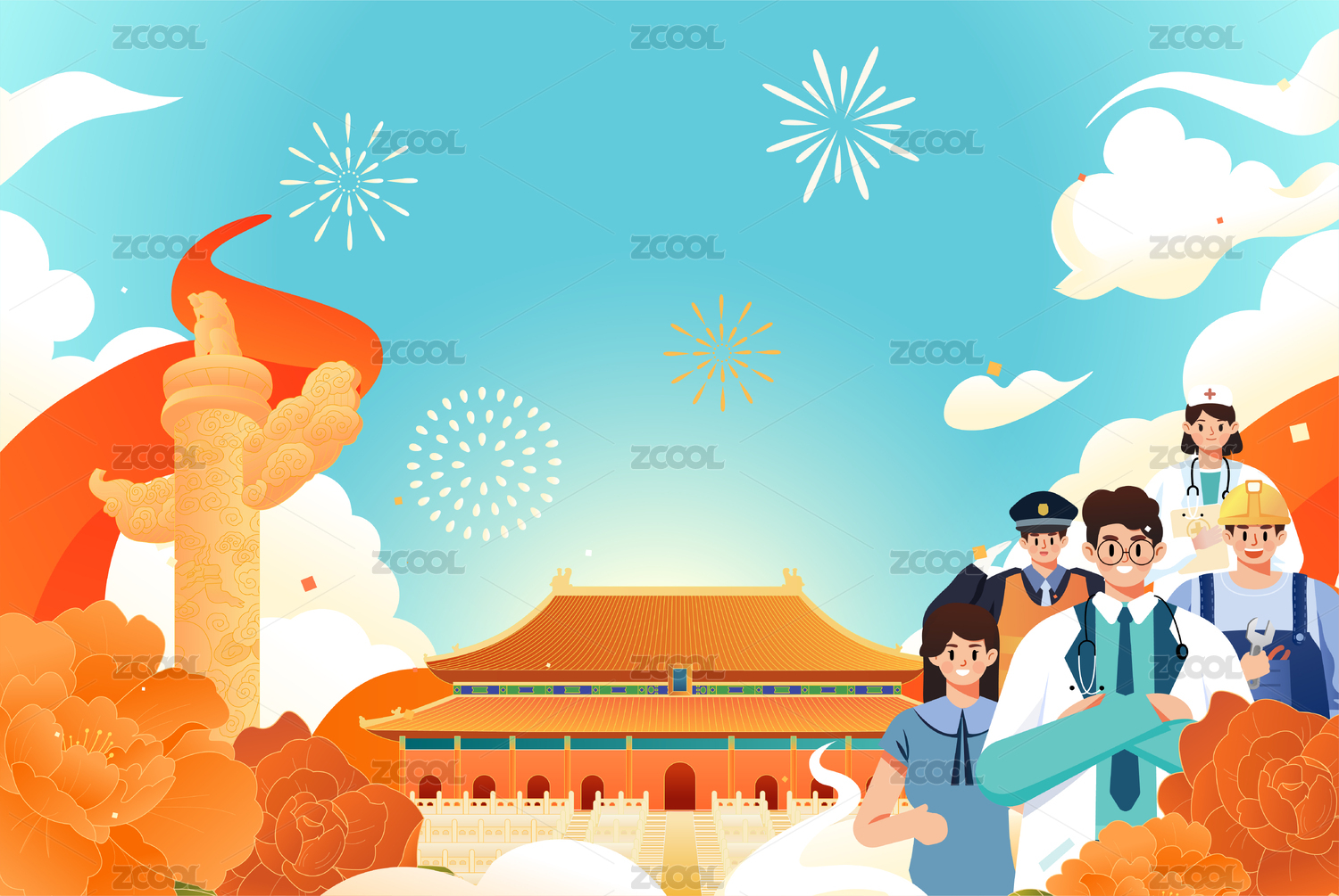 國慶職業(yè)人物插畫