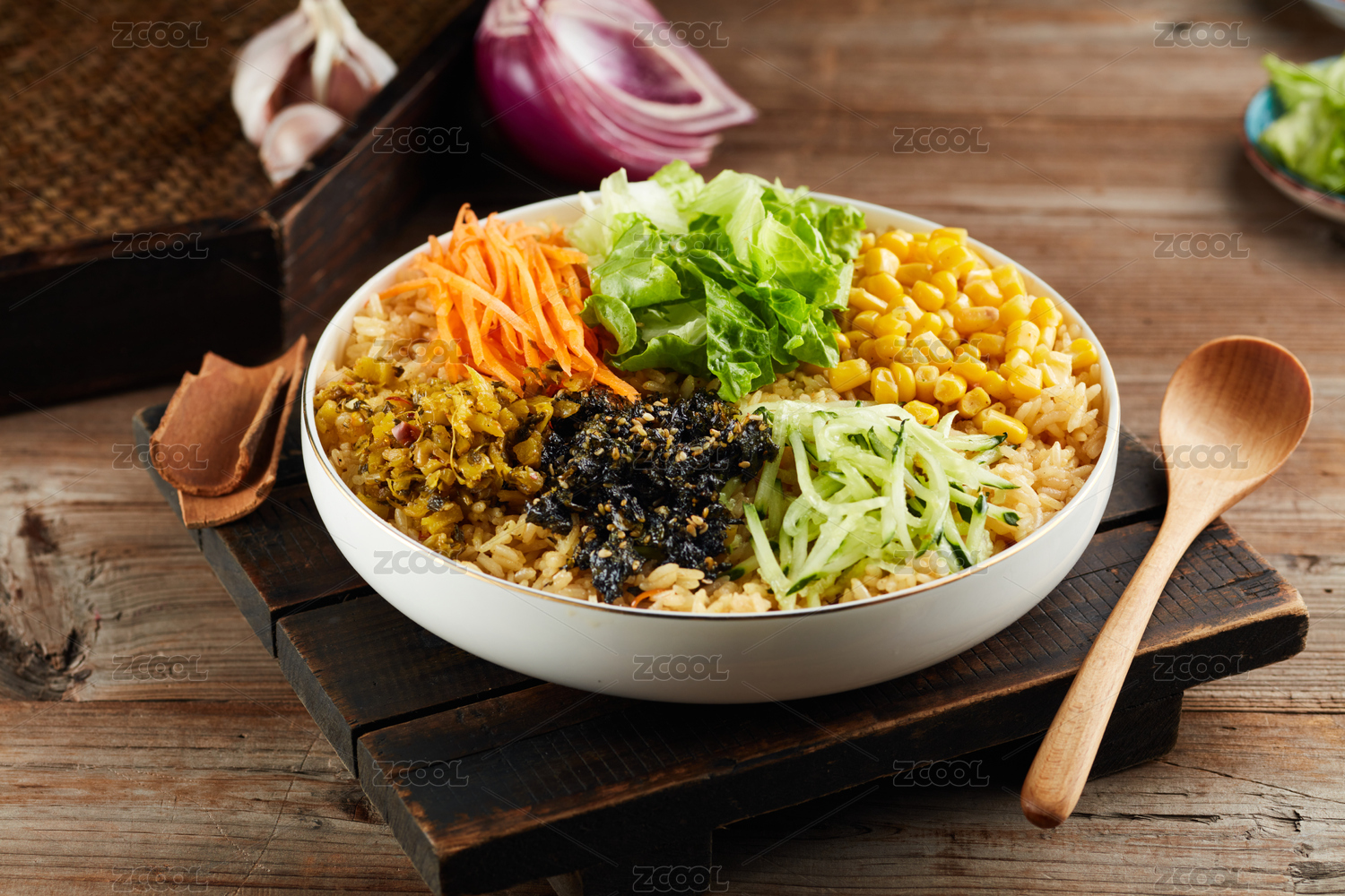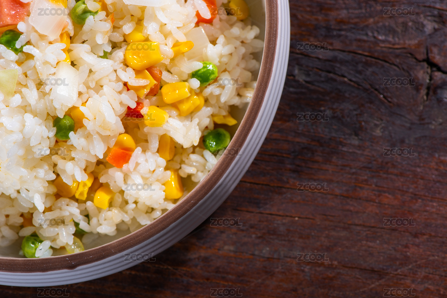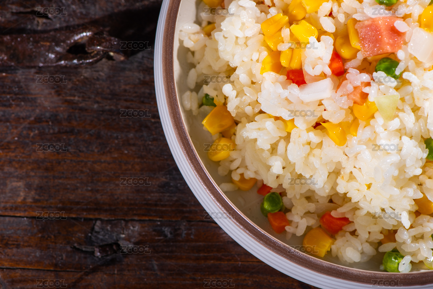西餐盤里的蔬菜什錦炒飯