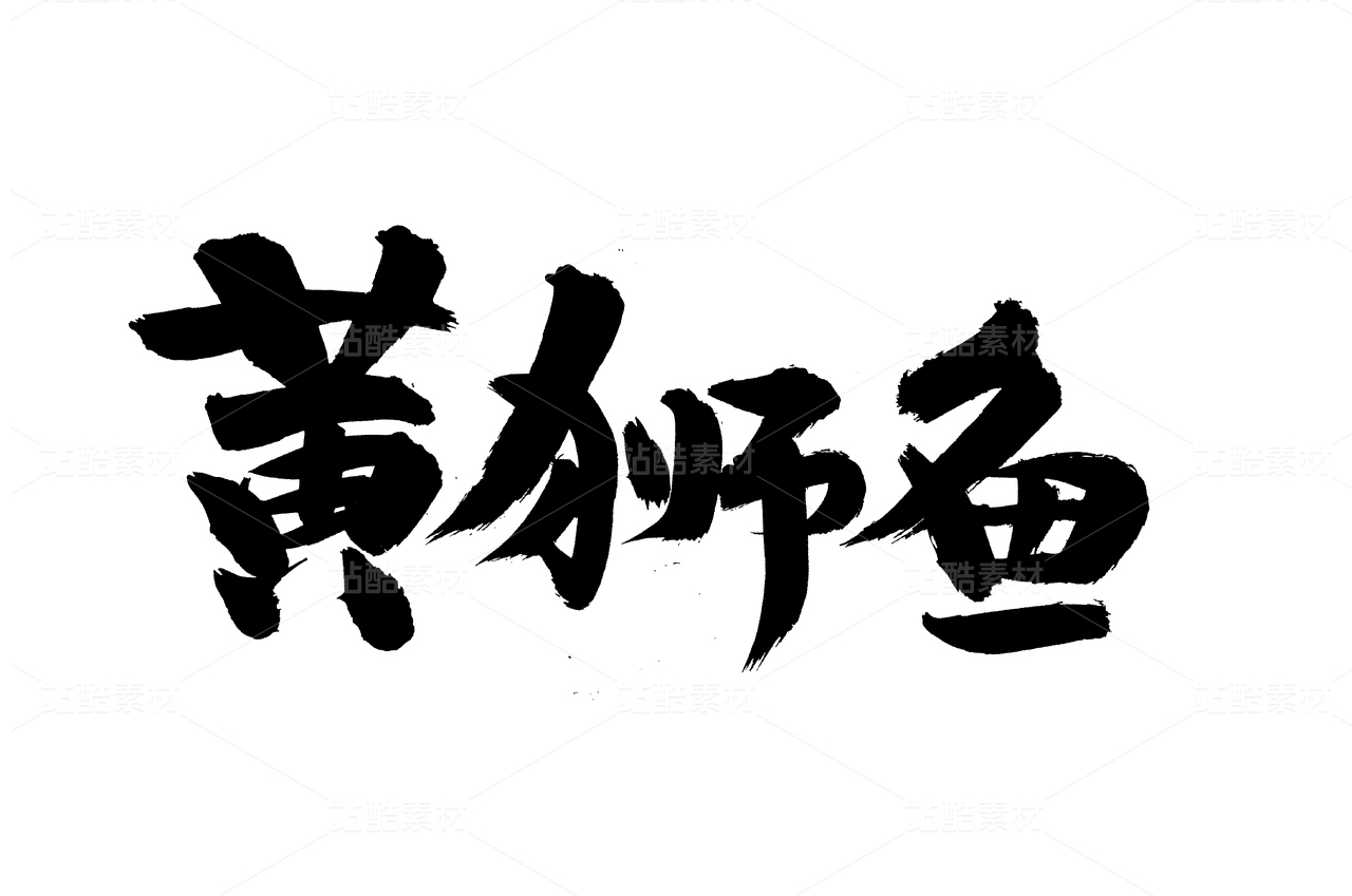手寫漢字書法字體黃獅魚