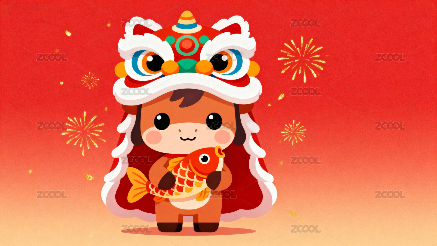 卡通舞獅魚娃迎新春
