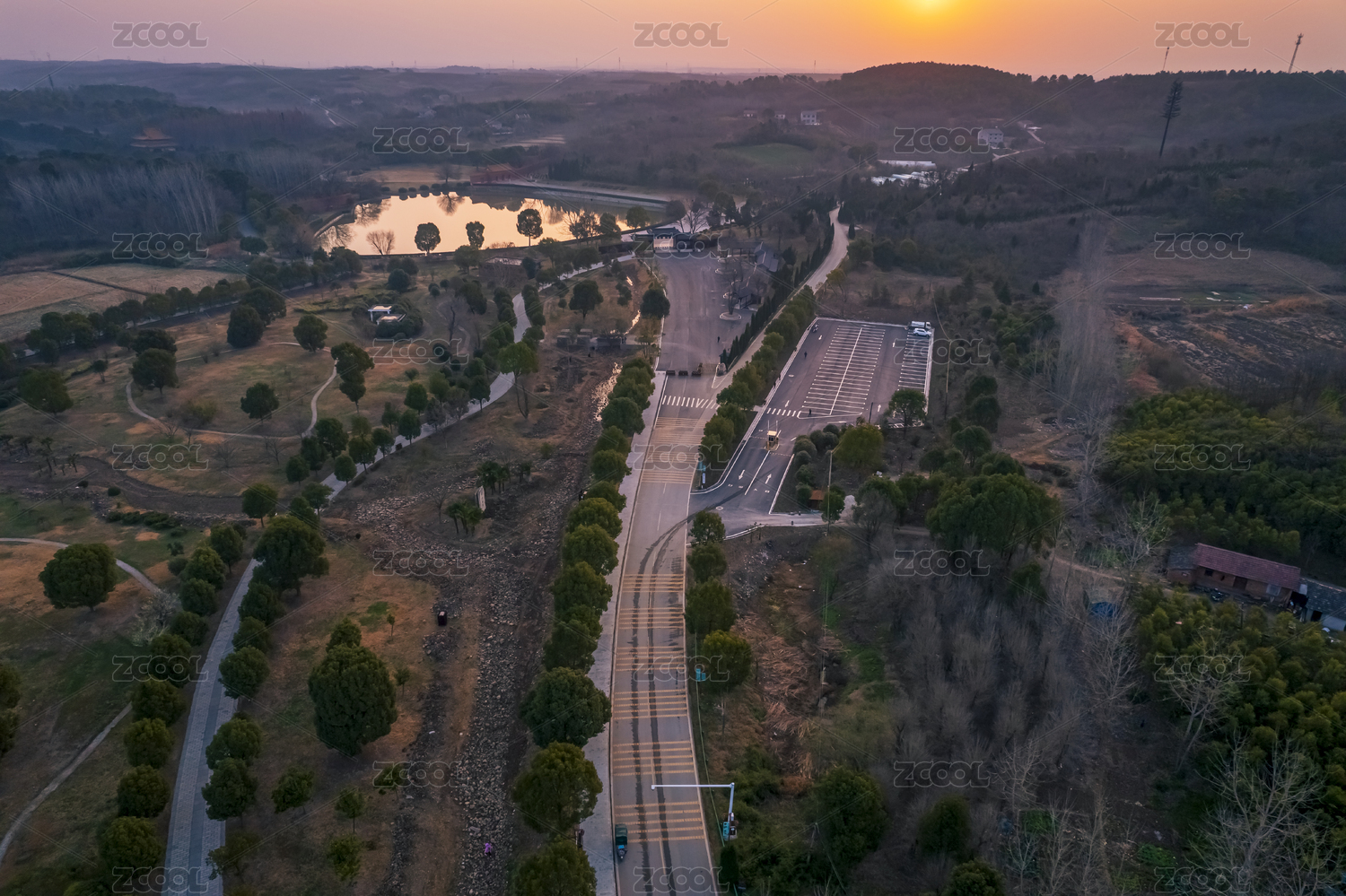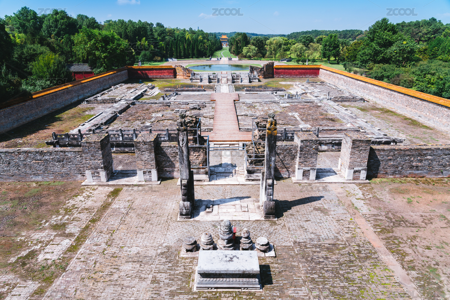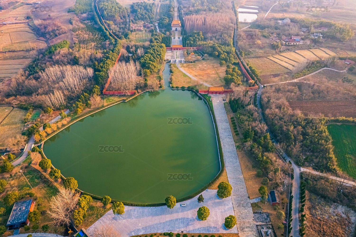 中國(guó)湖北省鐘祥市俯拍明顯陵的中軸線