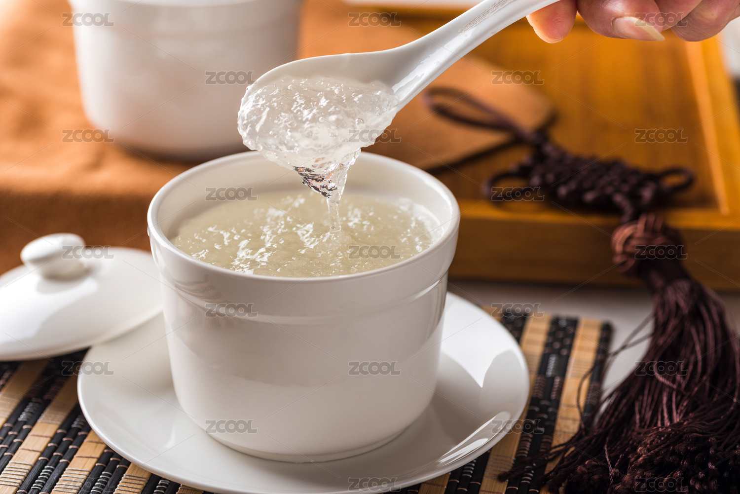 勺子舀起湯盅里的滋補(bǔ)佳品雪燕
