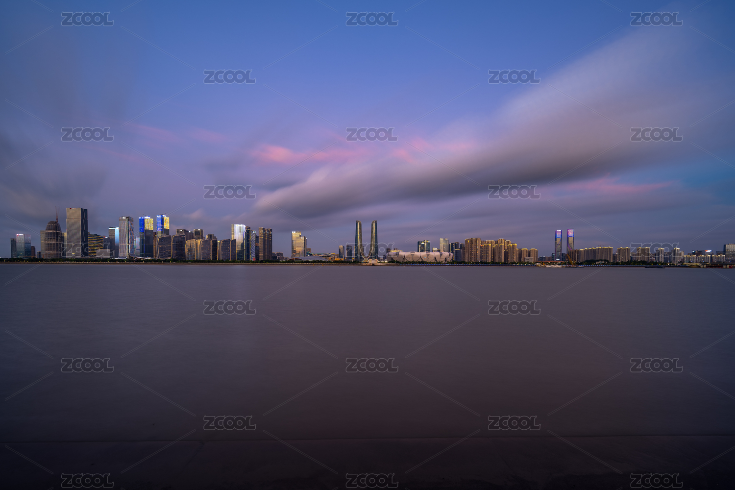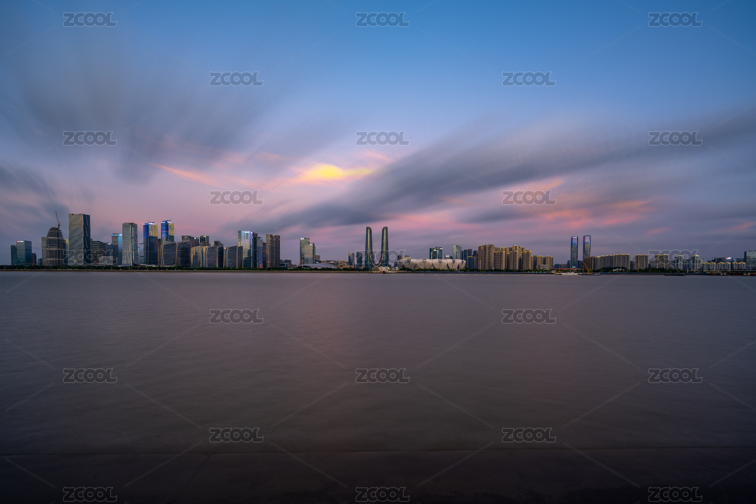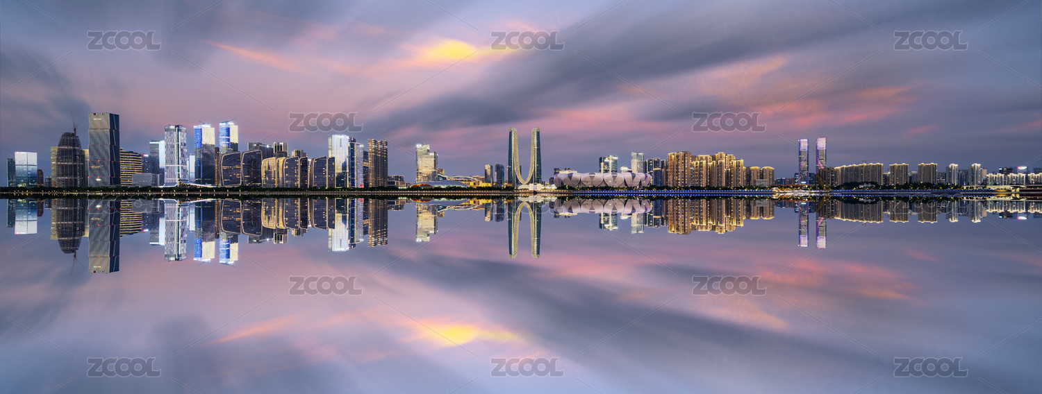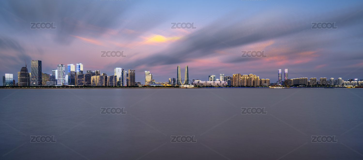 杭州之門(mén)世紀(jì)中心晚霞夜景