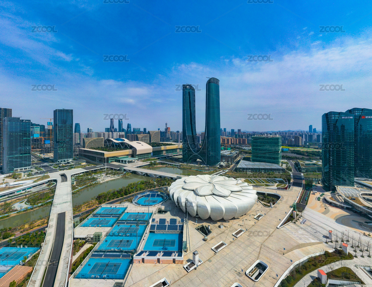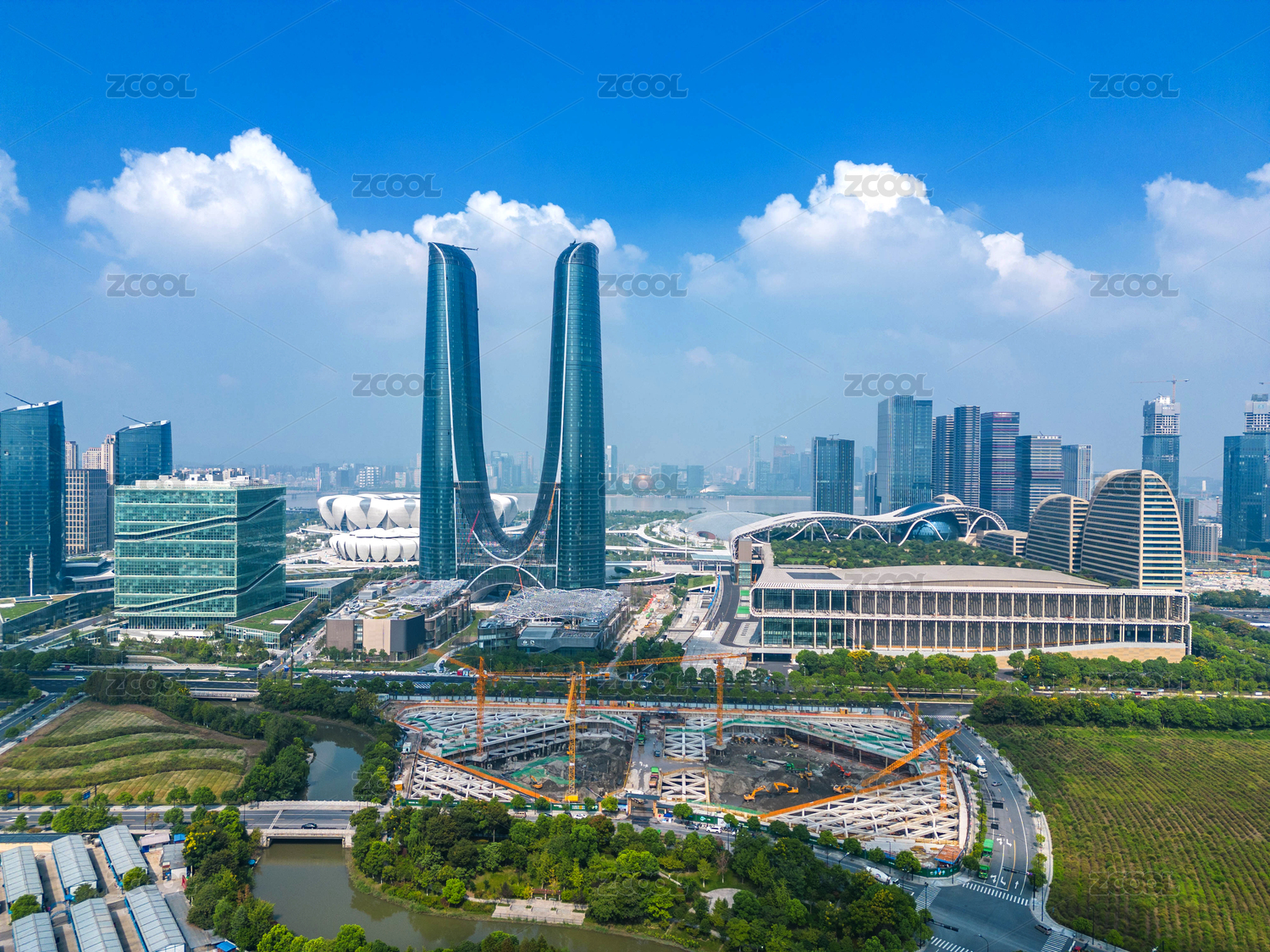 杭州奧體中心體育館與杭州之門(mén)城市地標(biāo)建筑
