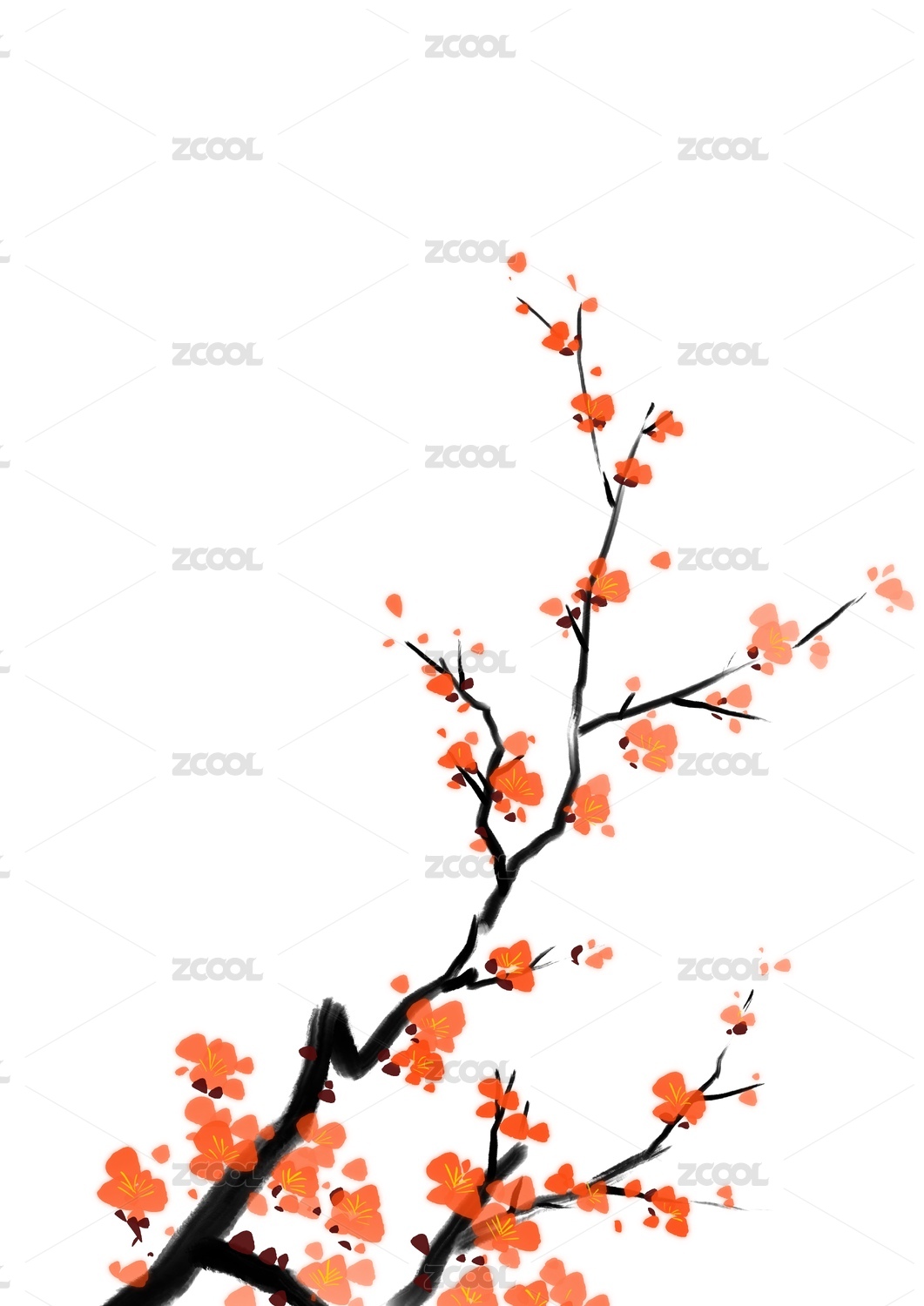 中國風(fēng)設(shè)計(jì)素材背景分離高雅紅梅