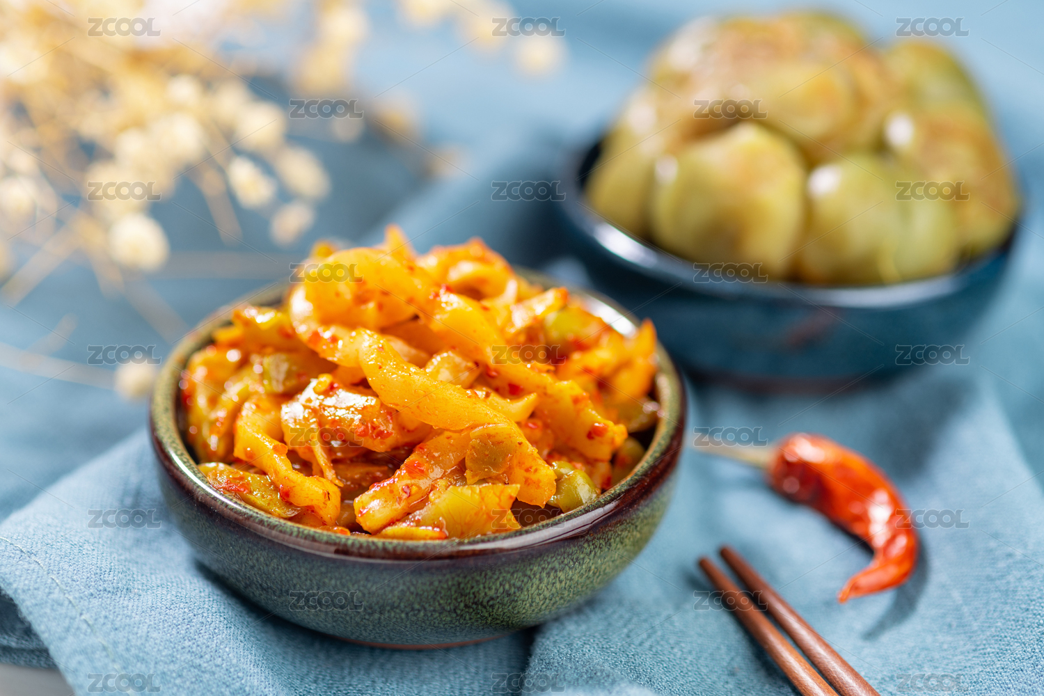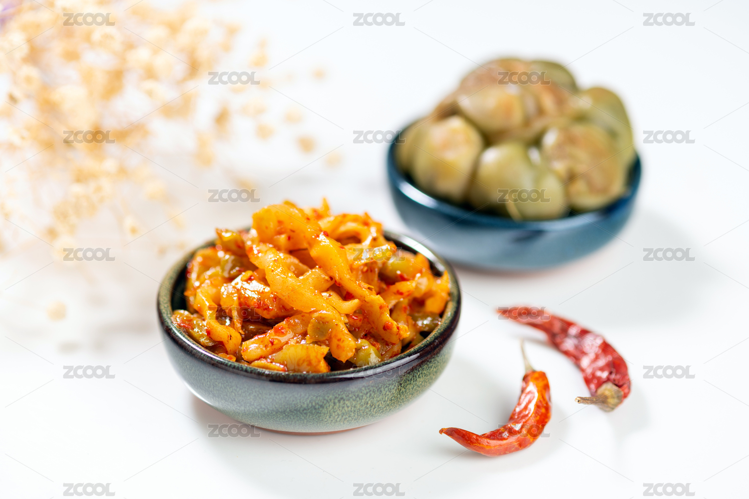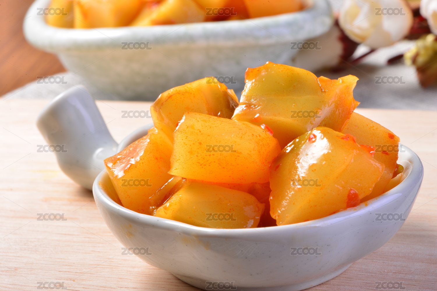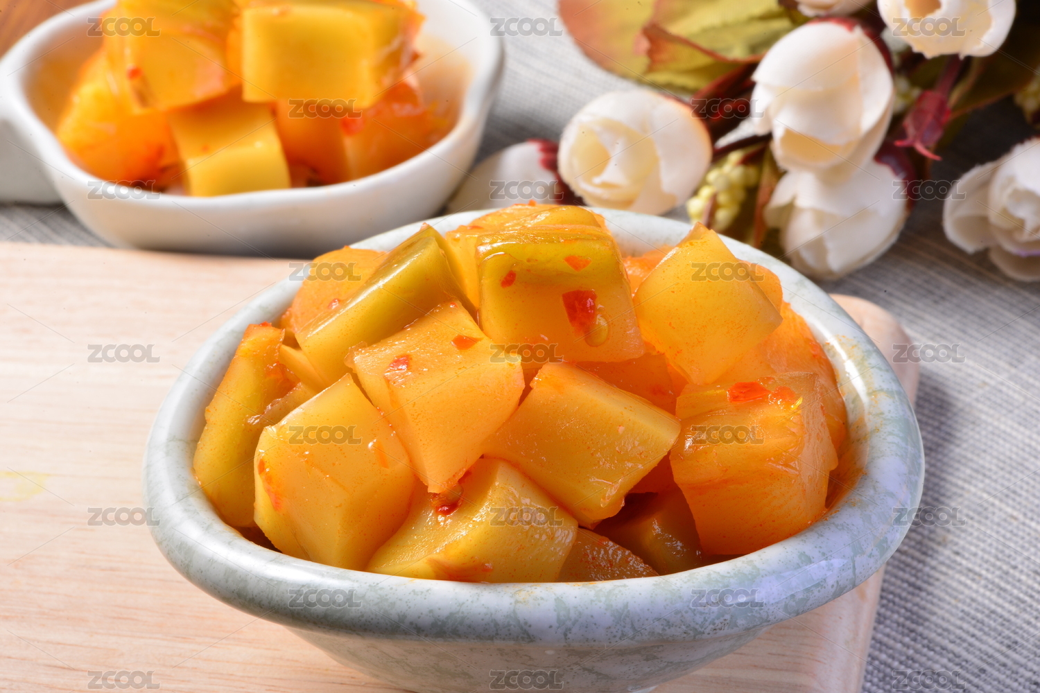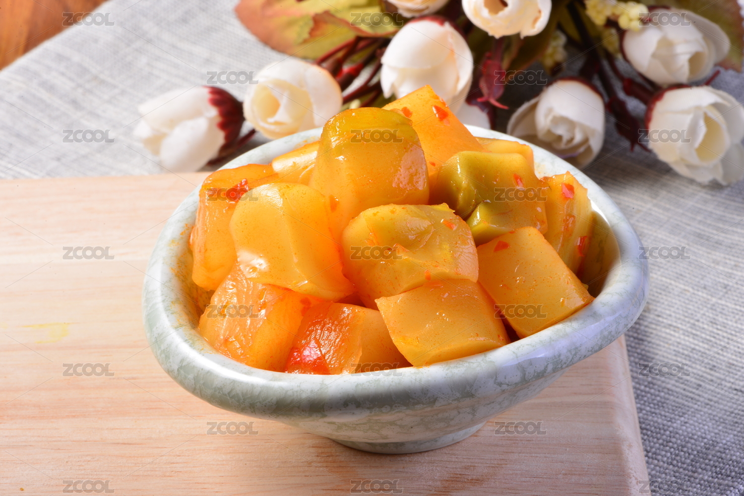 白底上的咸菜榨菜