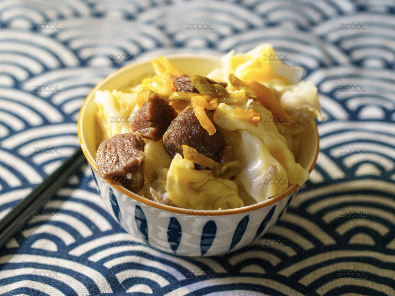 暗色調(diào)背景上一碗榨菜小碟