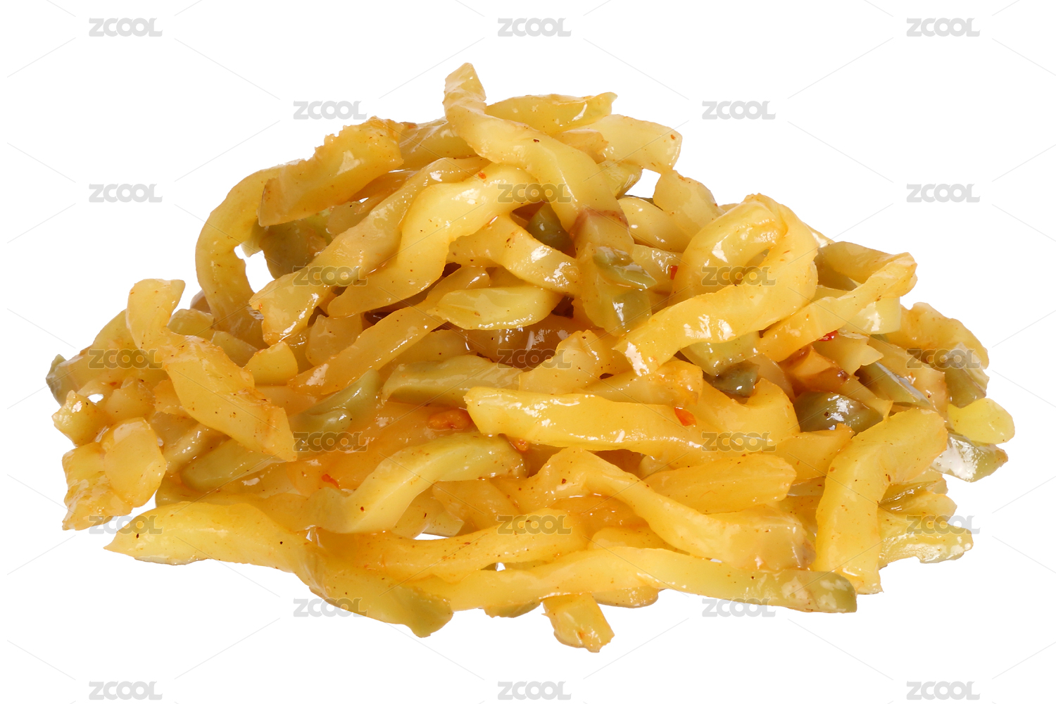 麻辣榨菜絲特寫(xiě)佐餐咸菜白色背景