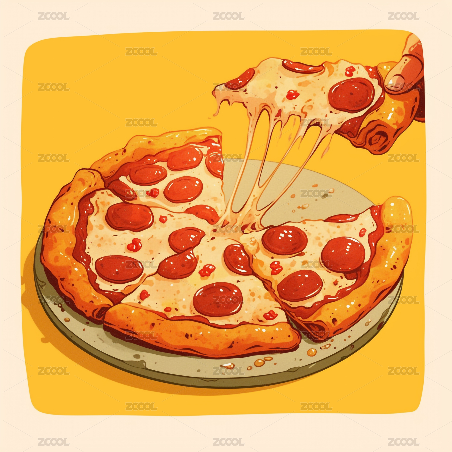 復古美味披薩芝士拉絲香腸片鋪滿餅面
