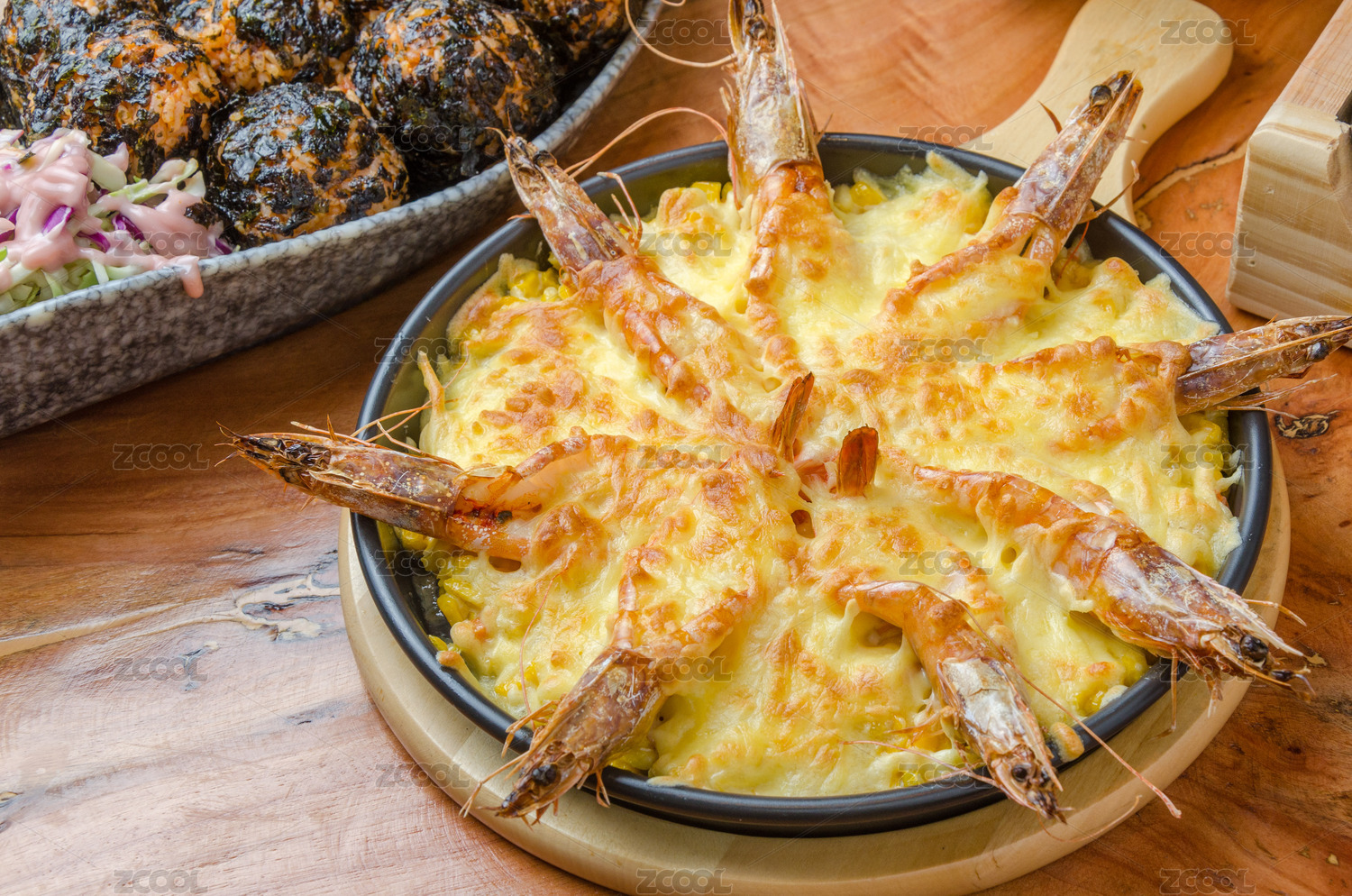 一道美味的日本料理,芝士烤大蝦