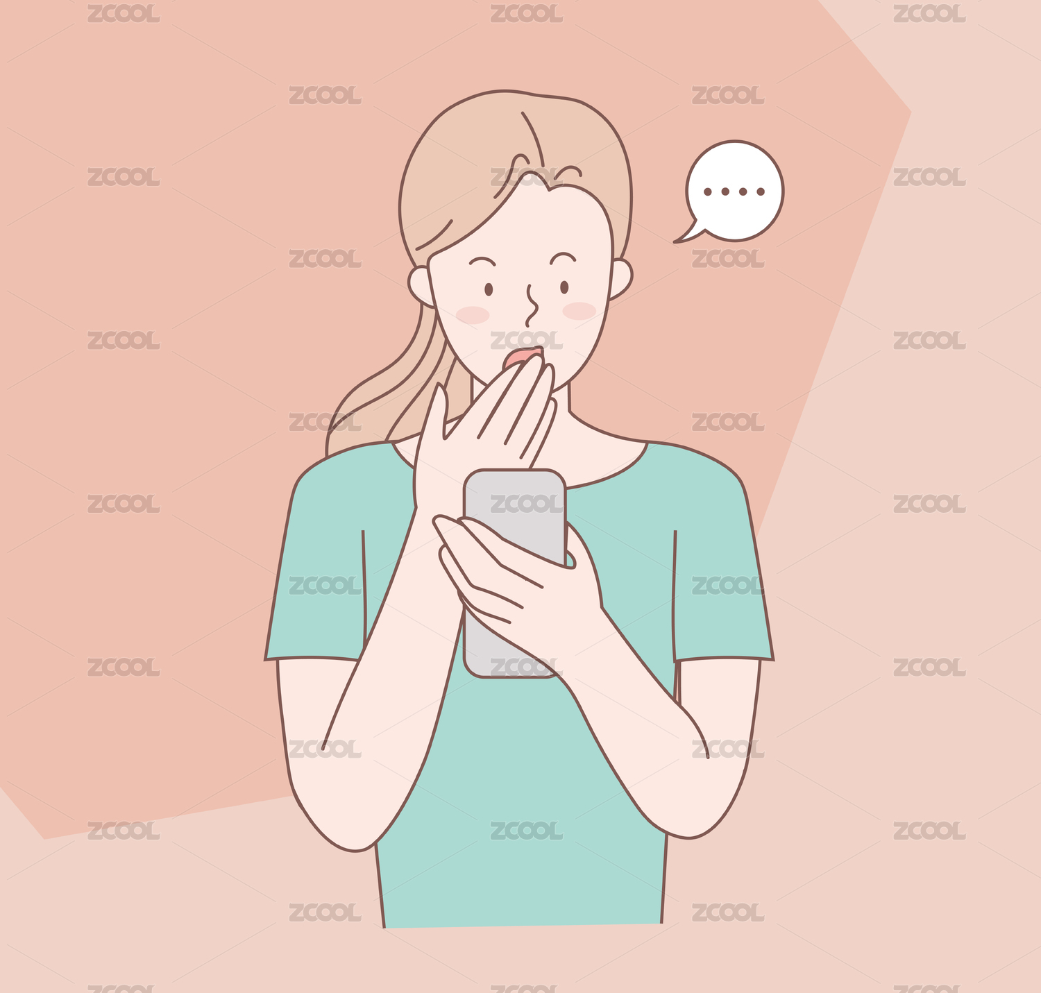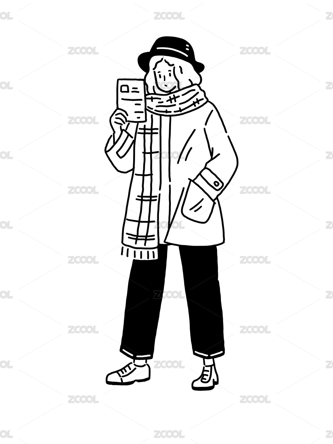 女孩看手機(jī)的線條人物