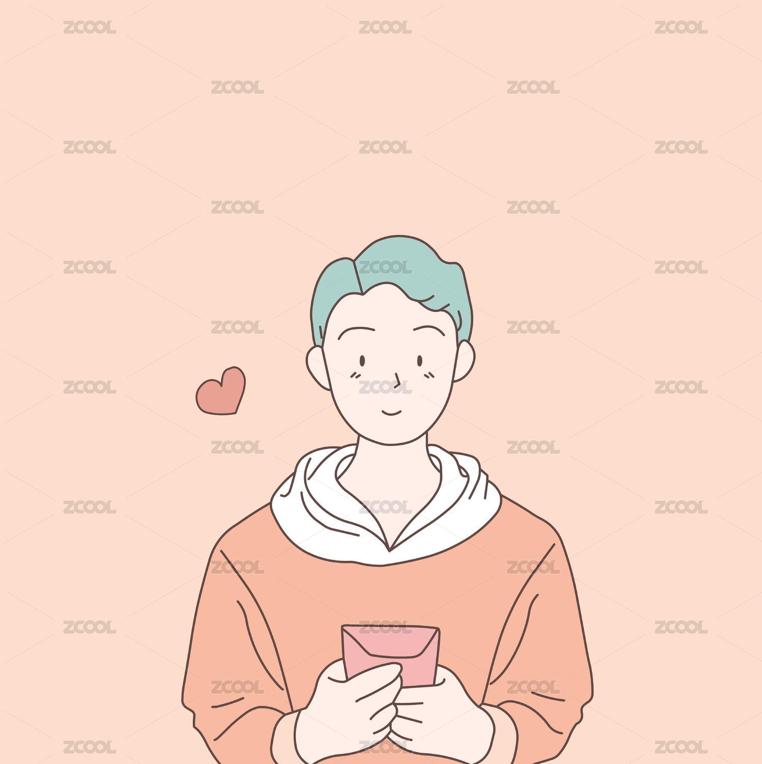 看手機(jī)男孩的矢量線條人物