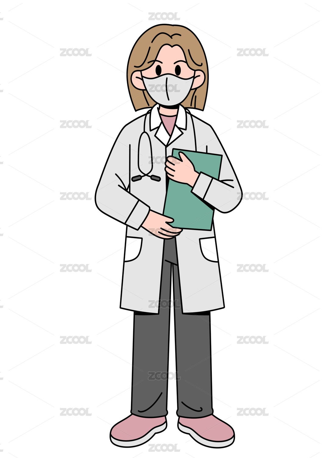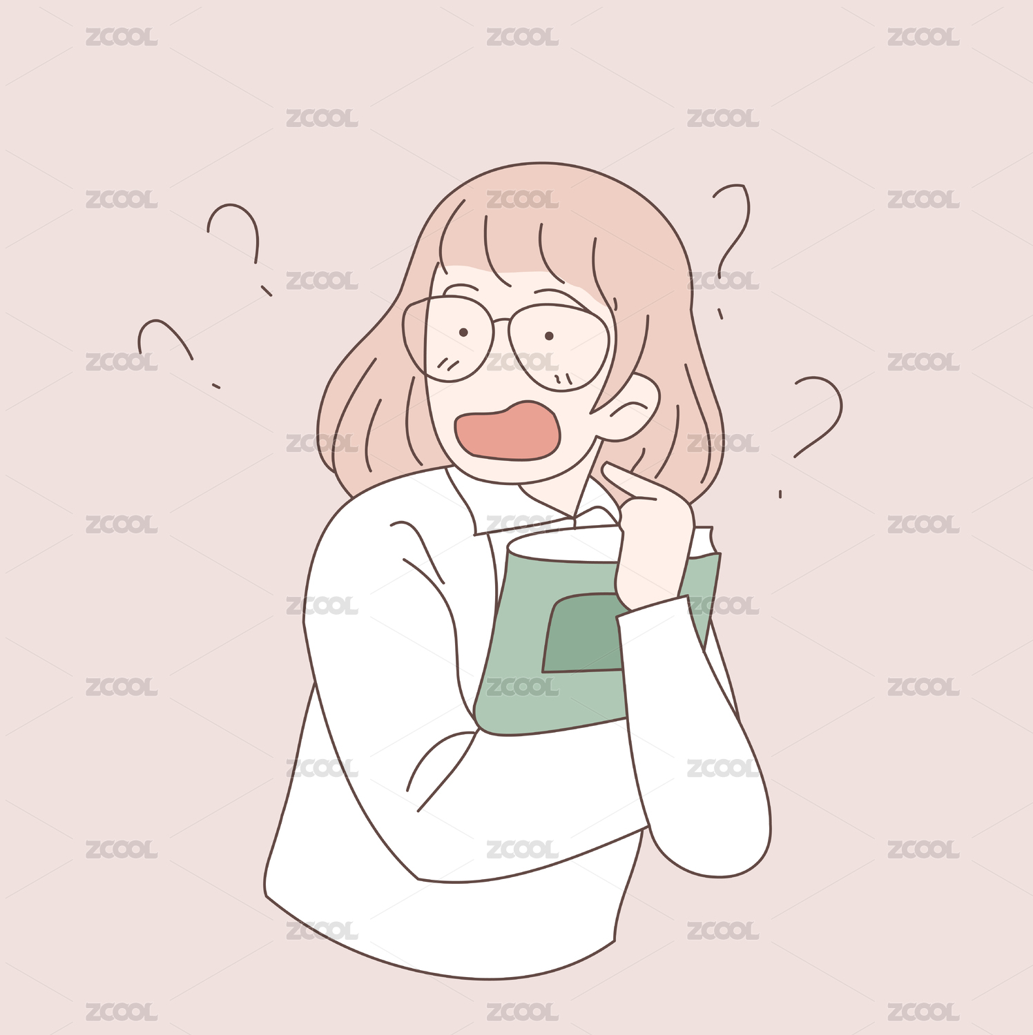 抱著書(shū)疑問(wèn)女孩的矢量線條人物