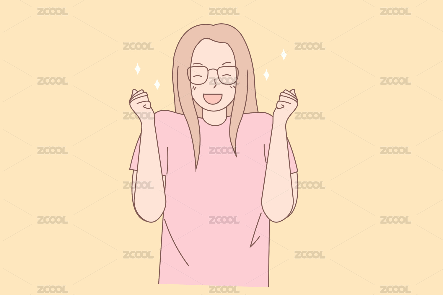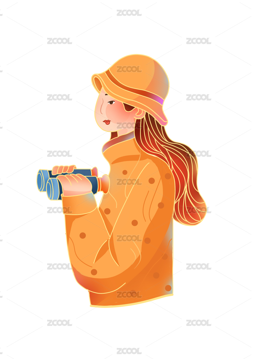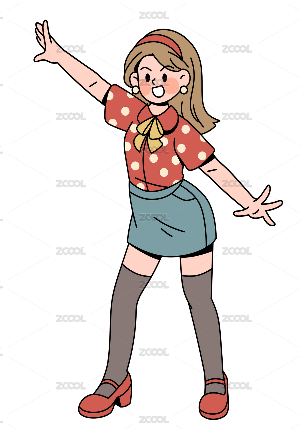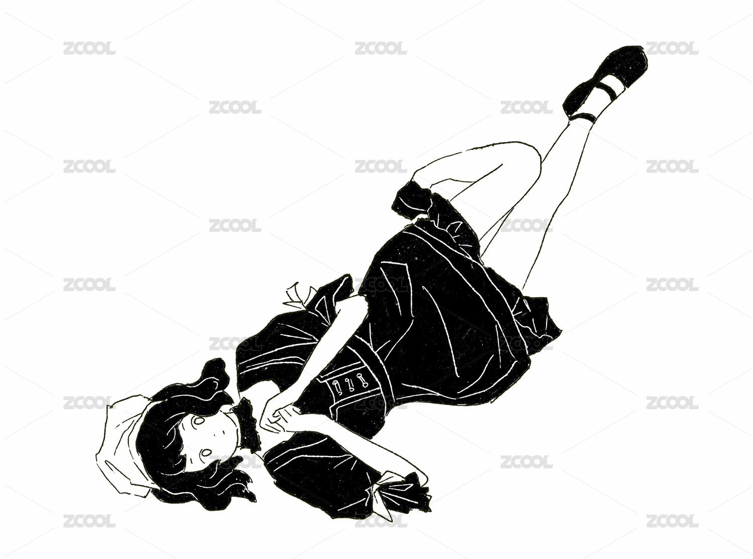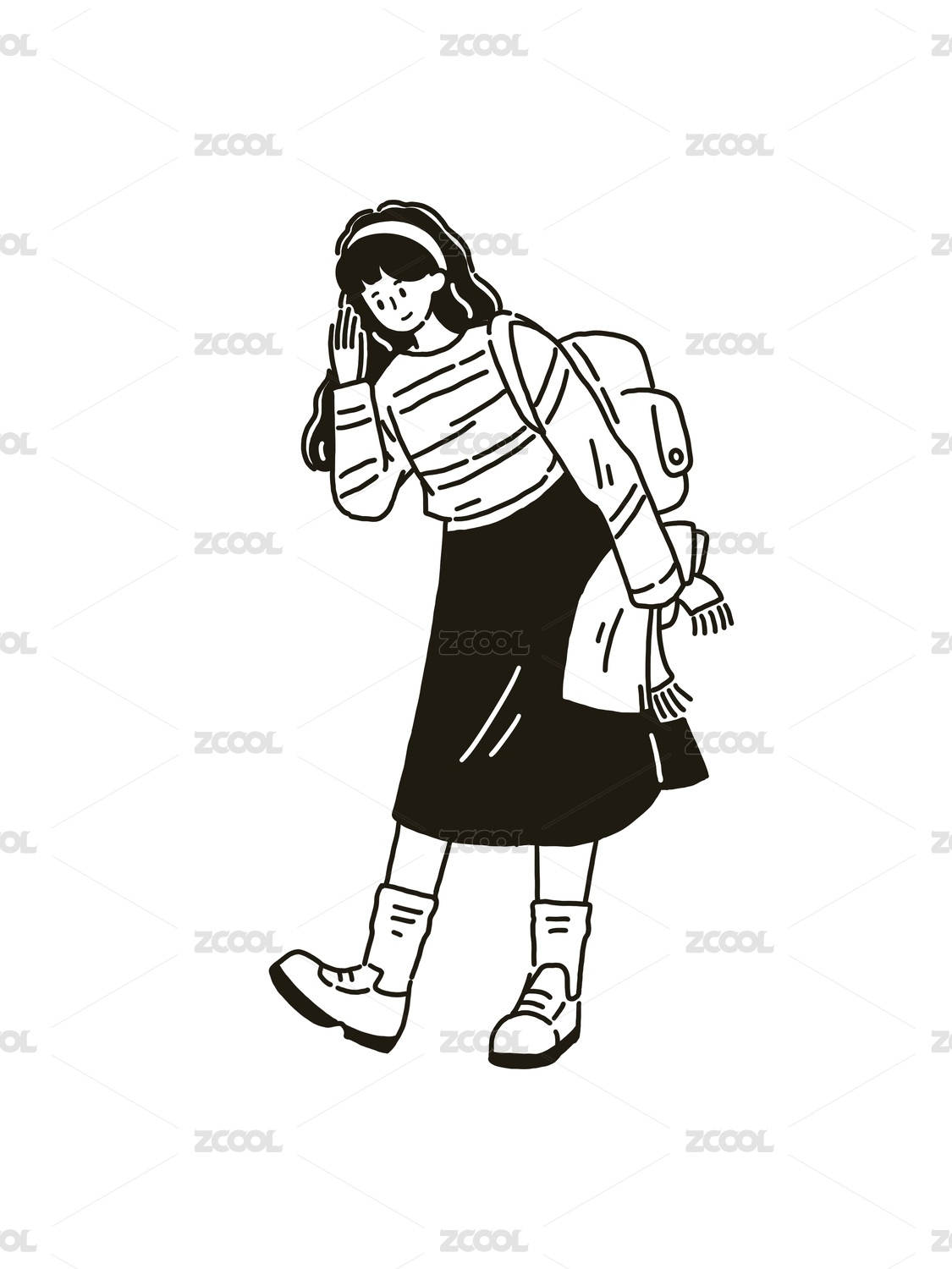 女孩抬頭笑矢量線條人物