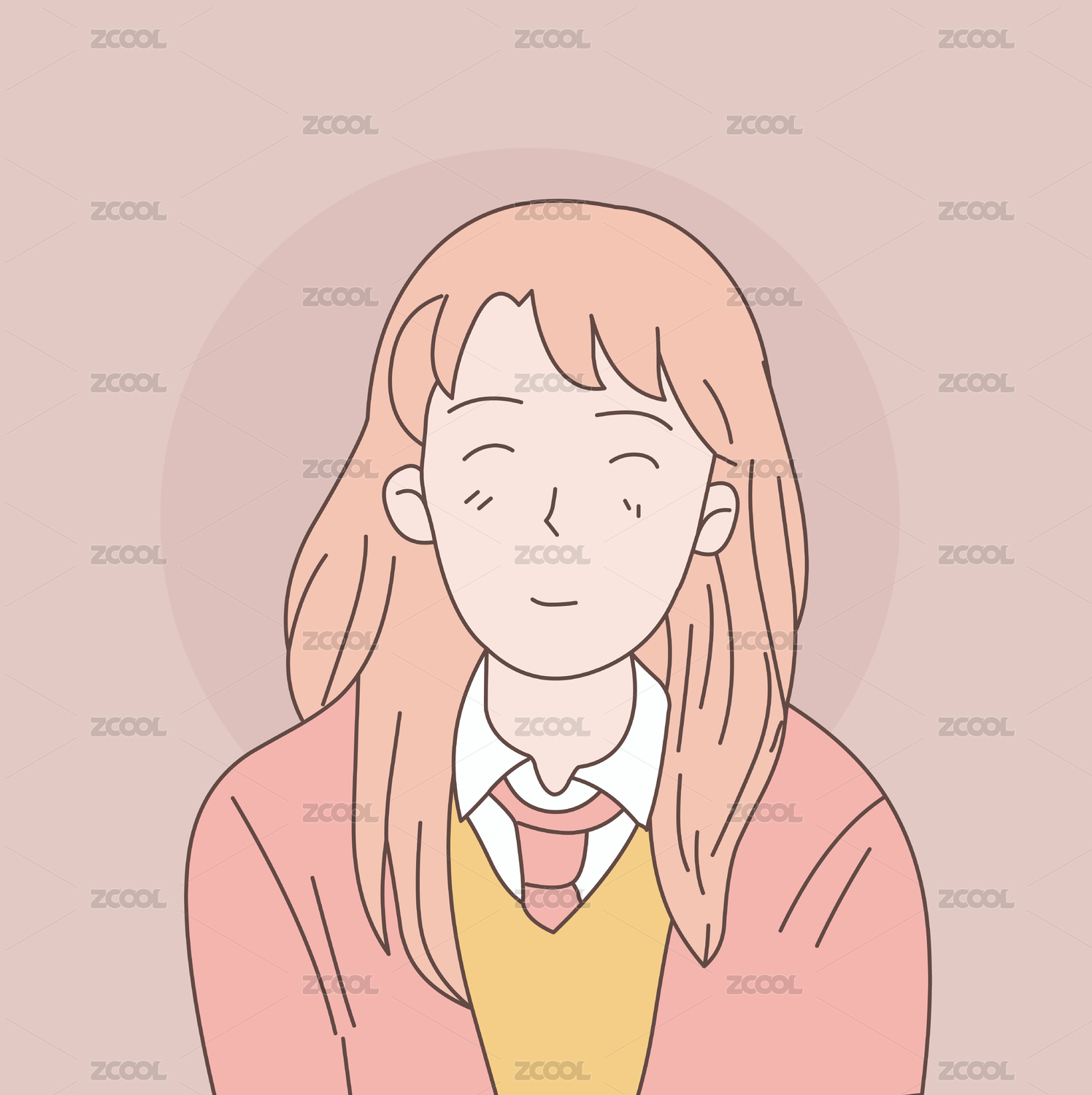 長(zhǎng)發(fā)女孩的線條人物