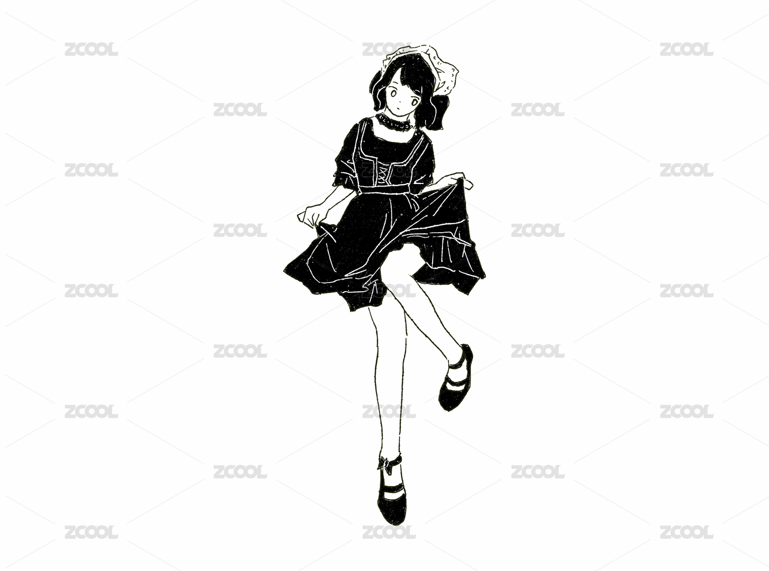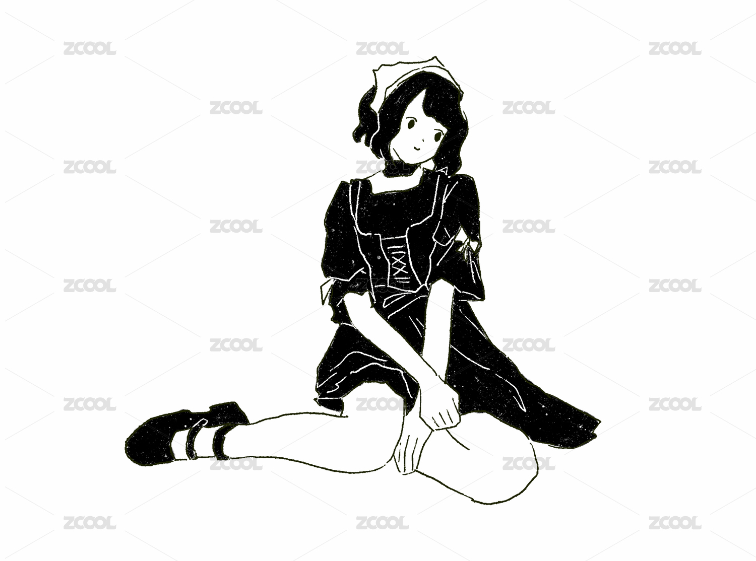 黑白線條人物扁平插畫(huà)