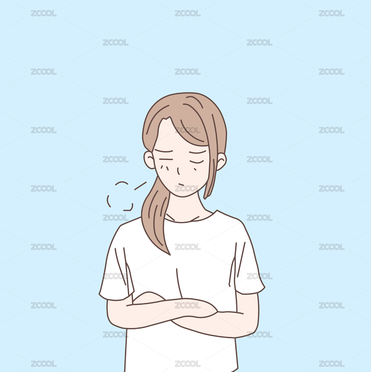 抱著胳膊嘆氣長(zhǎng)發(fā)女孩的矢量線條人物
