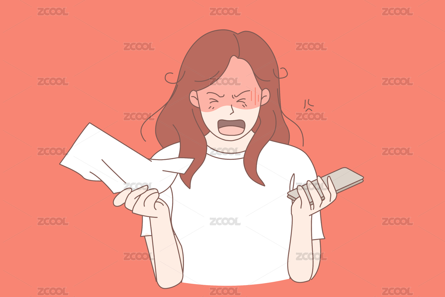 女孩大喊的線條人物矢量插畫(huà)