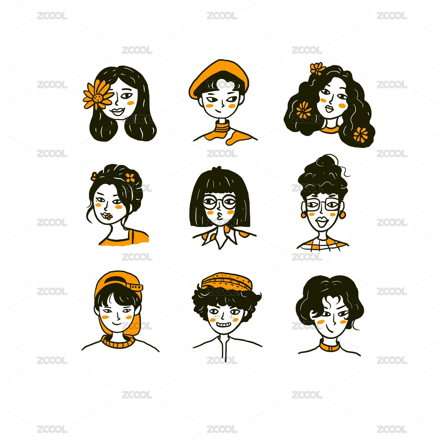 doodle線條人物男生女生頭像