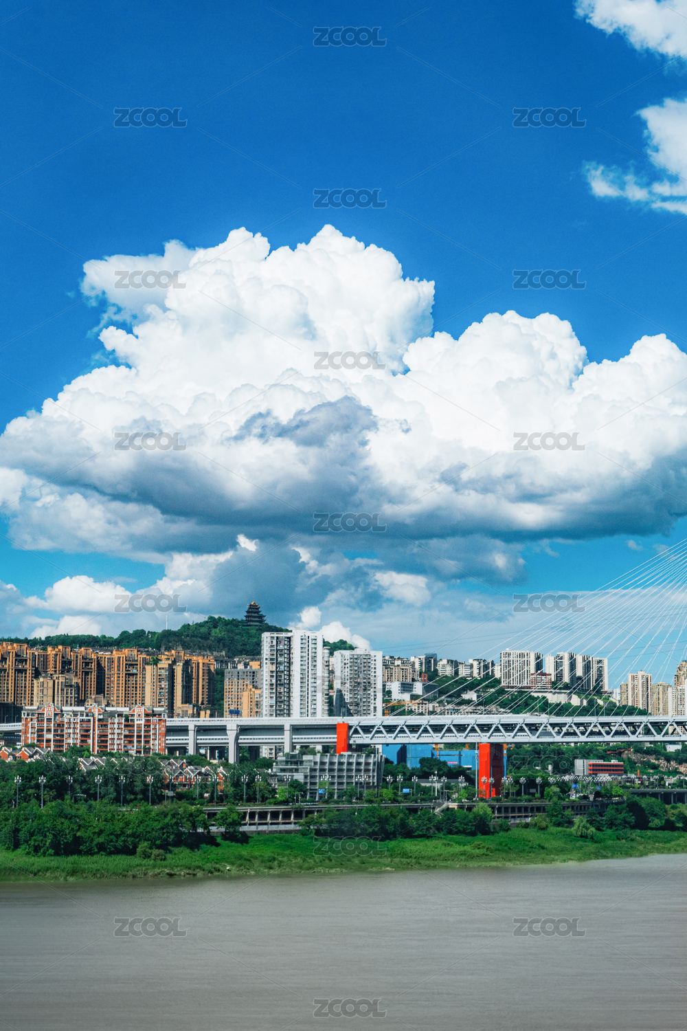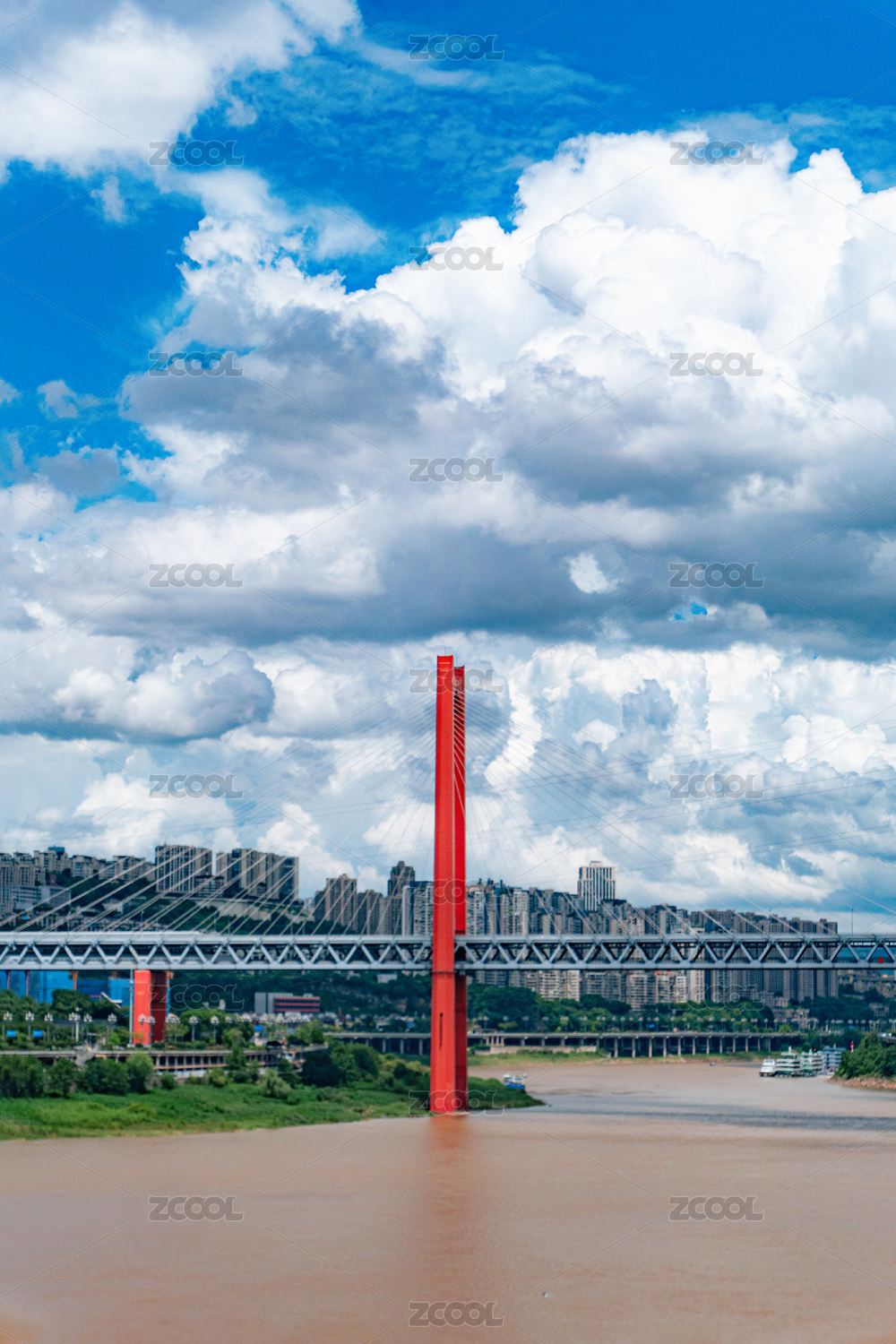 重慶沙濱路嘉陵江江景豎圖