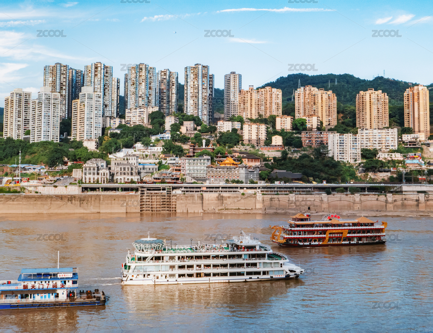 重慶朝天門長江游船江景與南濱路建筑