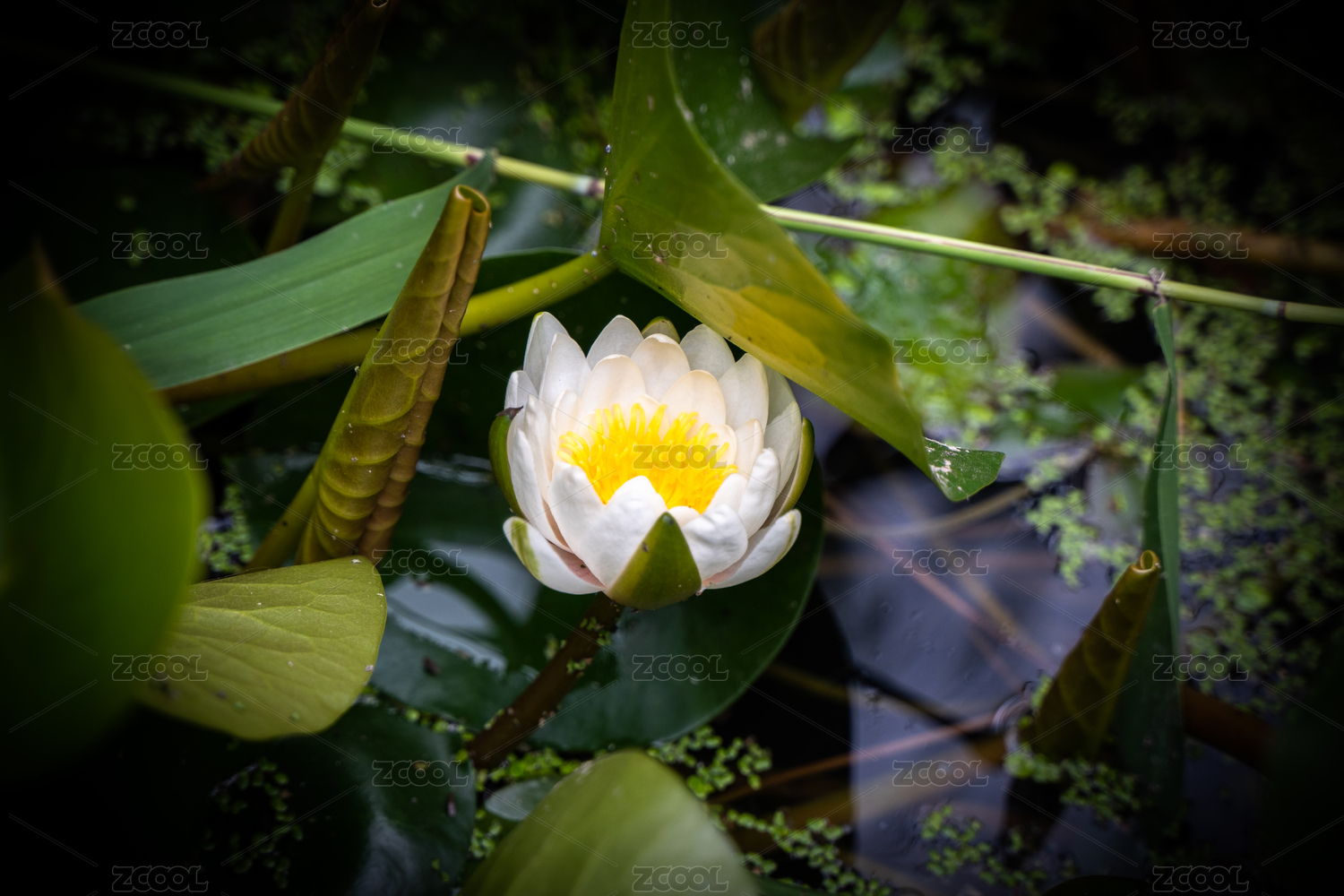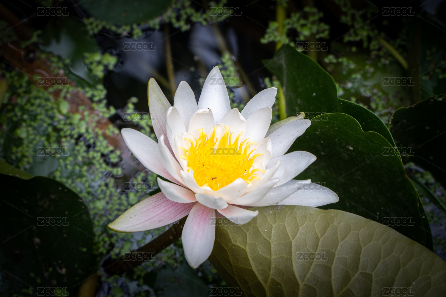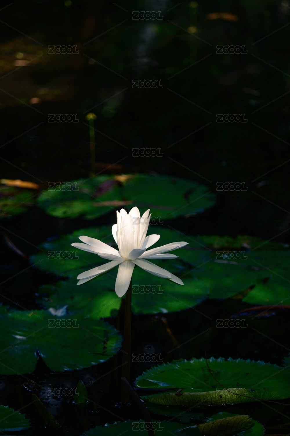 夏天池塘里盛開(kāi)的一朵白蓮花