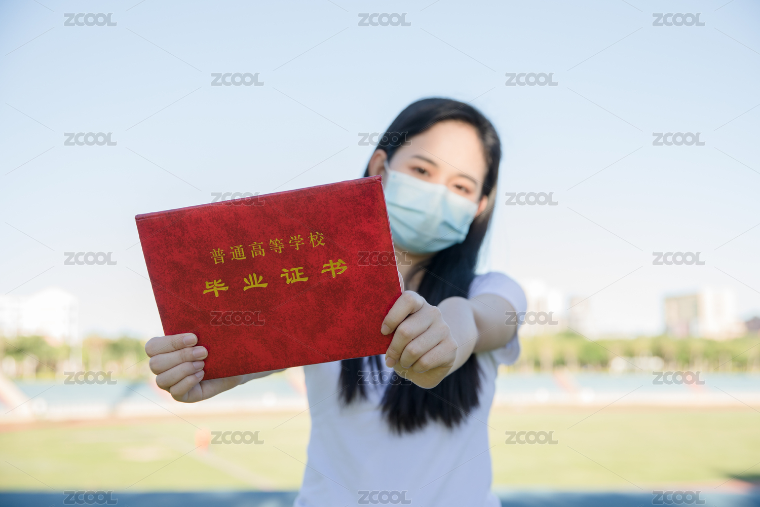 大學生帶著口罩拿著畢業(yè)證書