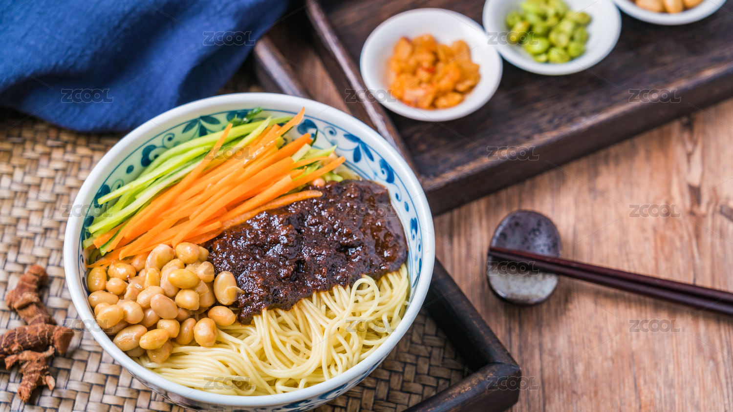 放在木桌上的北京美食老北京炸醬面