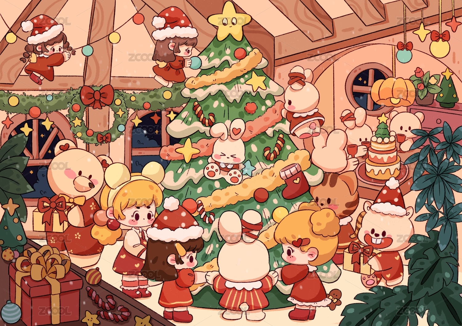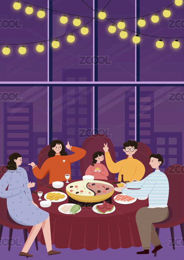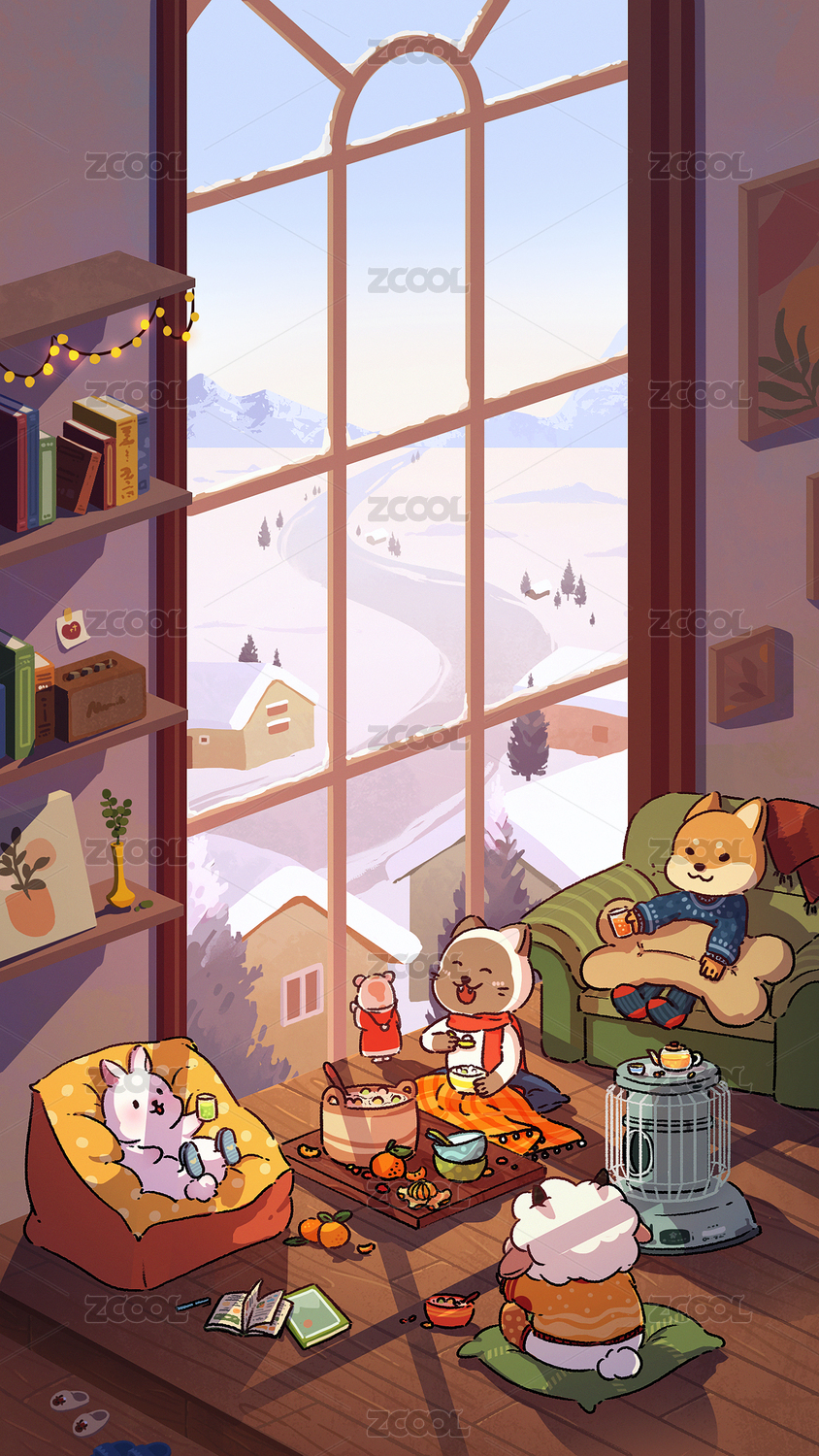 冬天雪景室內(nèi)溫暖歡樂聚會團圓