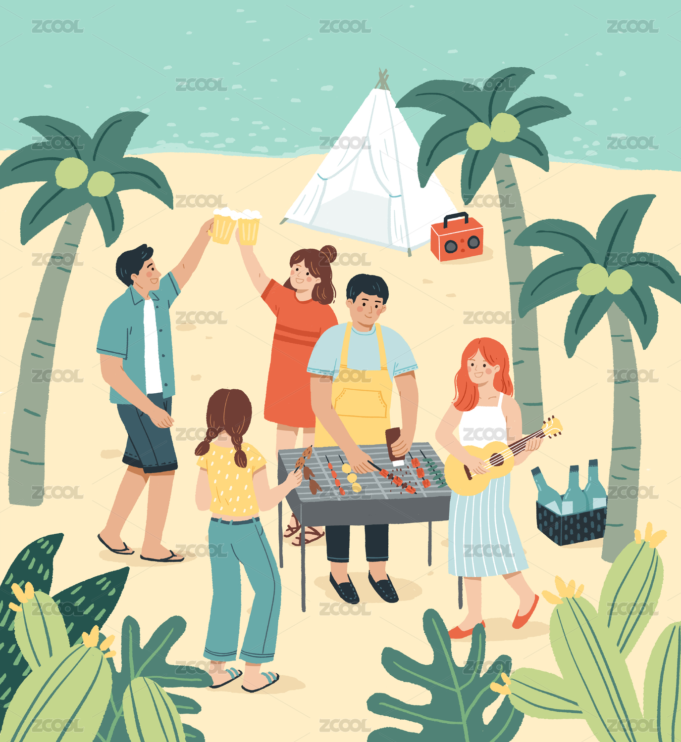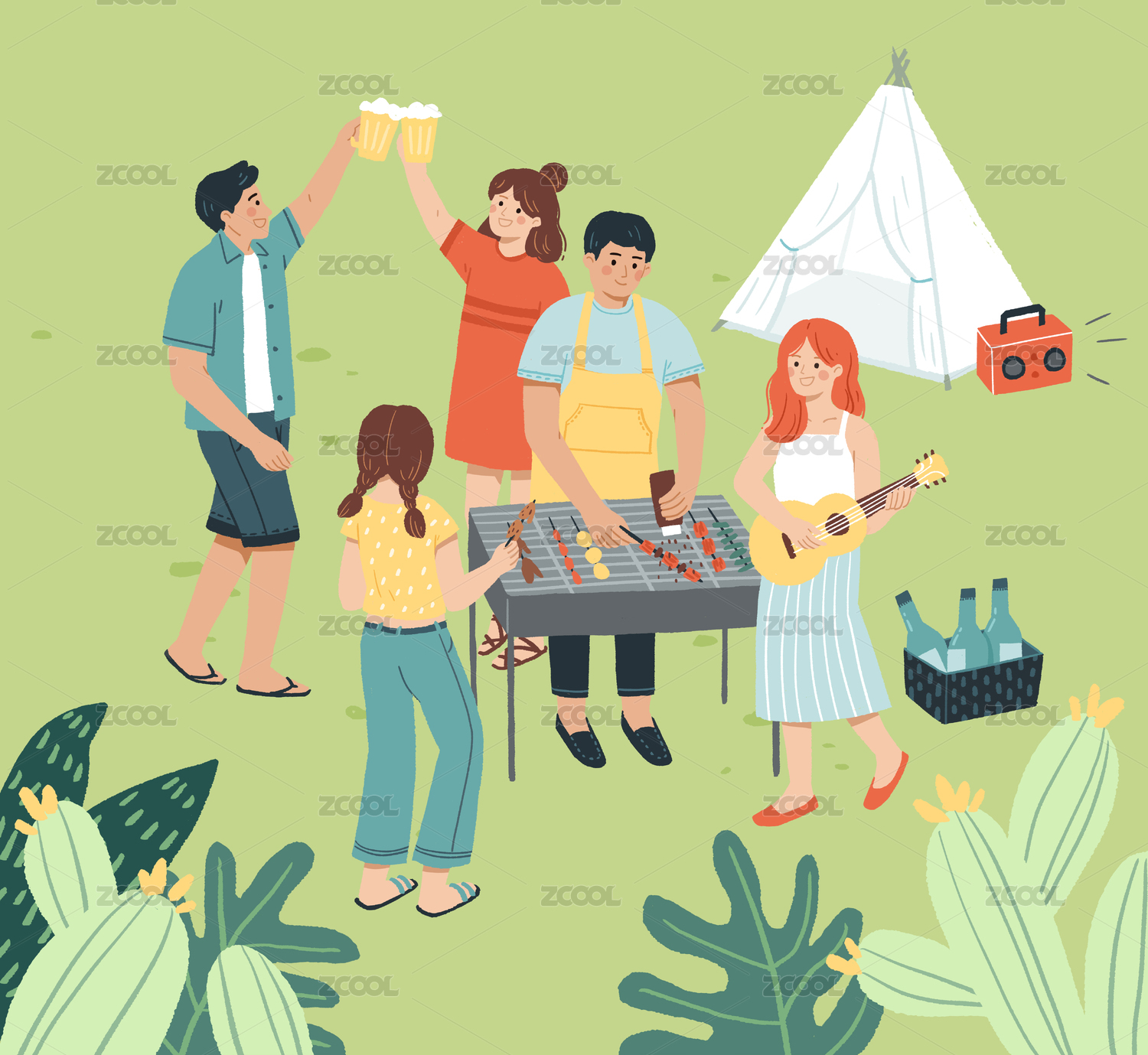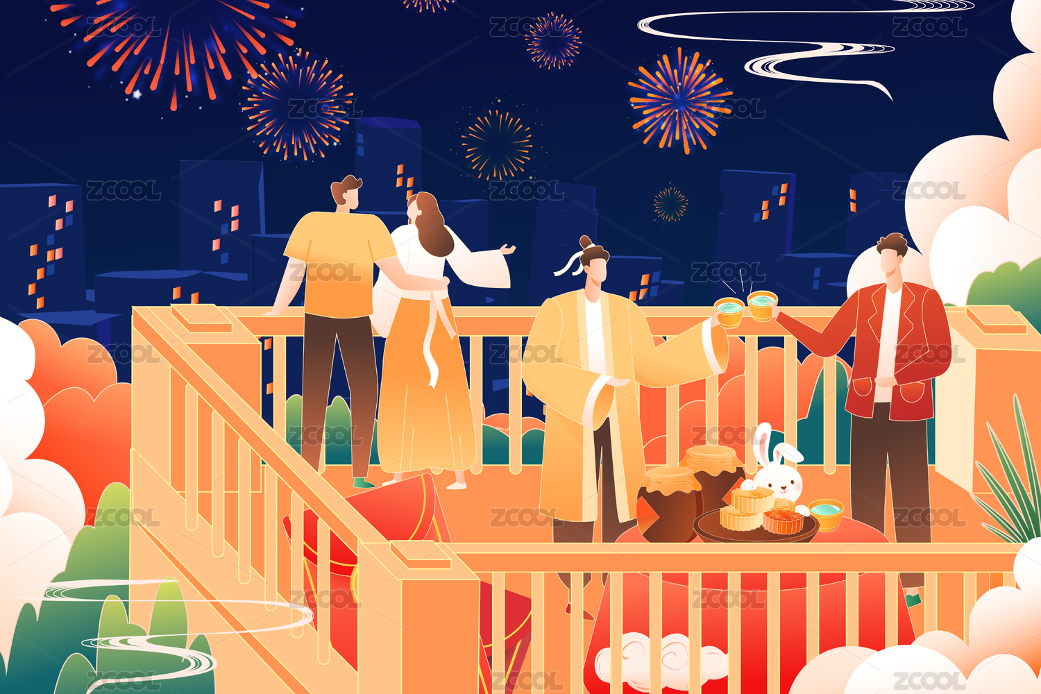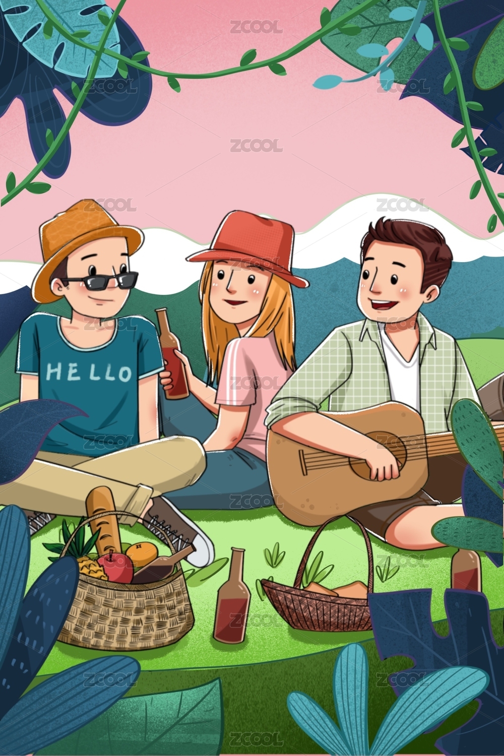 正月初四春節(jié)朋友聚會年俗插畫海報
