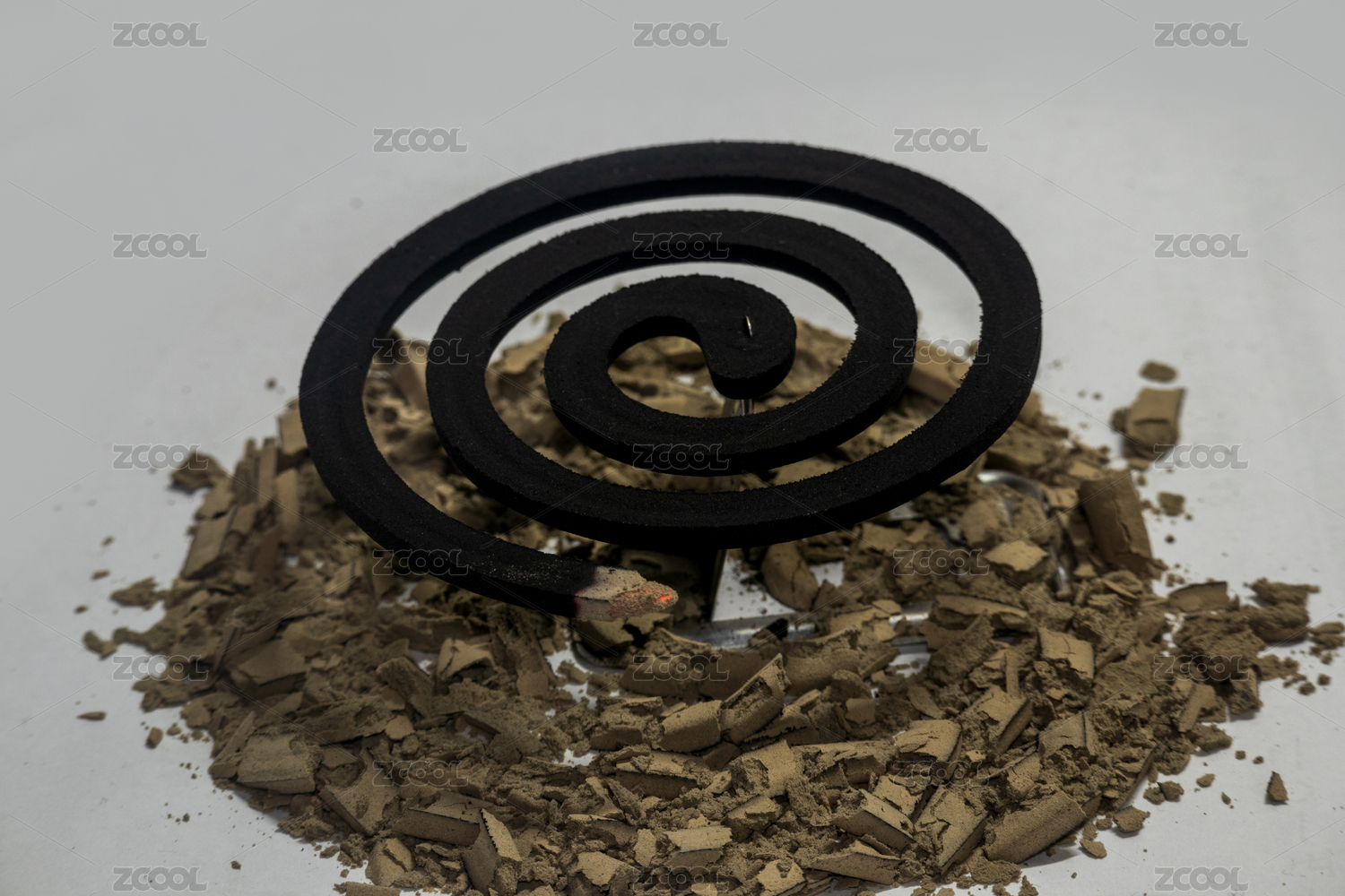 一盤燃燒了一段時(shí)間的蚊香靜物特寫