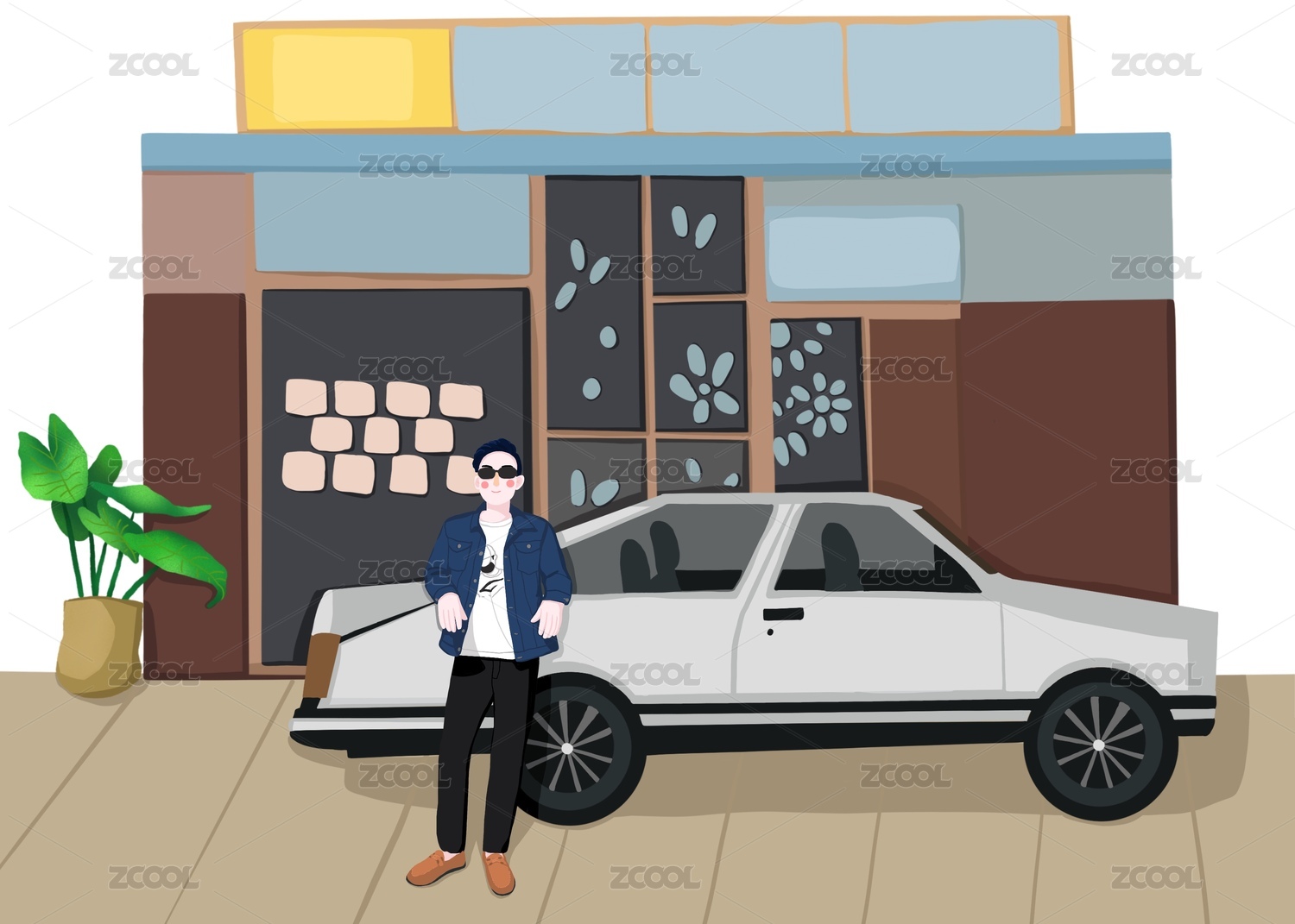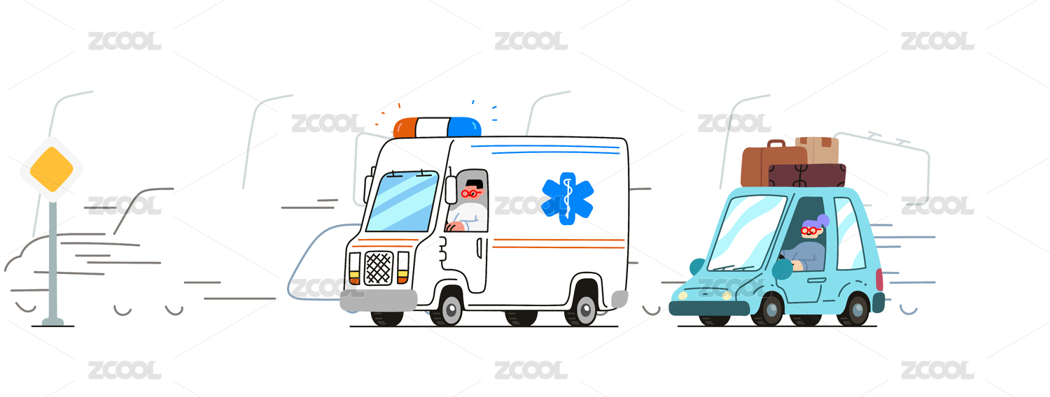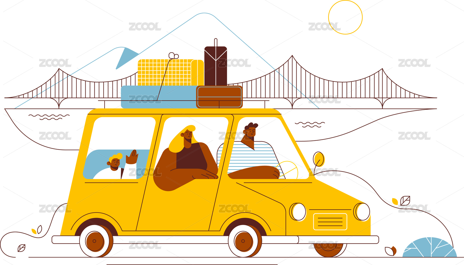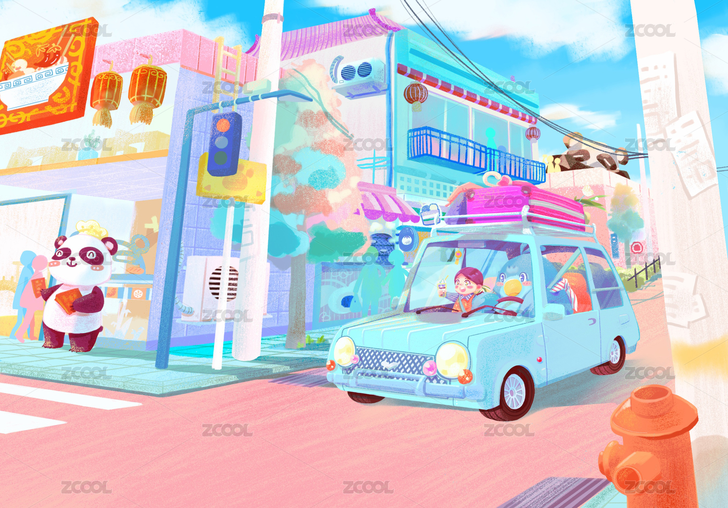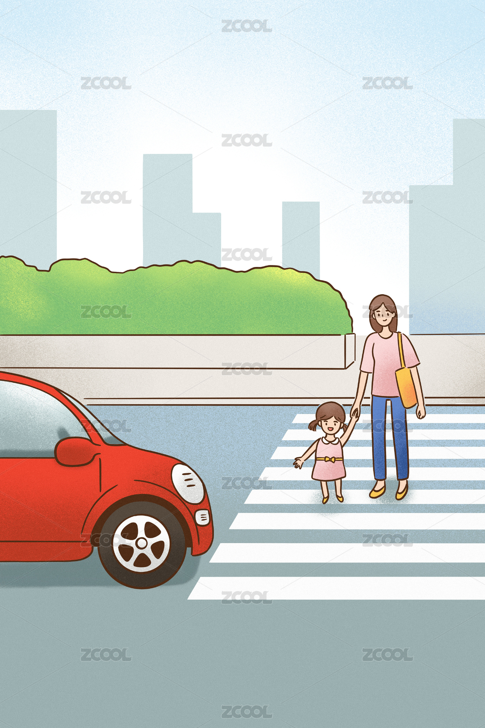 大人帶小孩過馬路小車禮讓海報(bào)噪點(diǎn)插畫