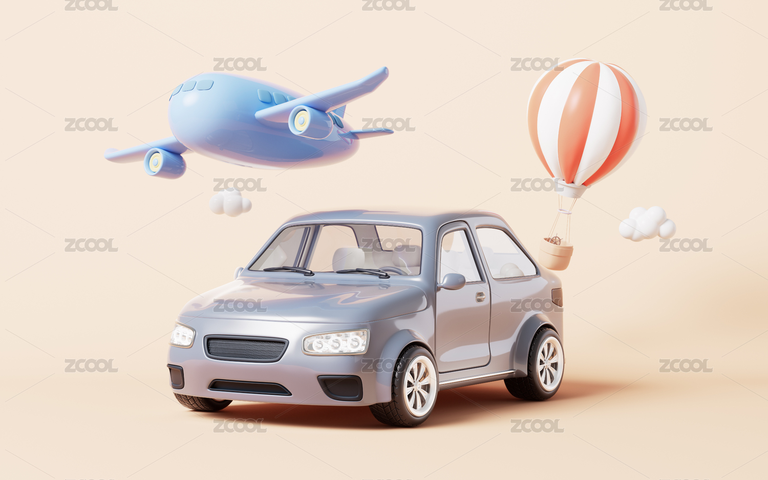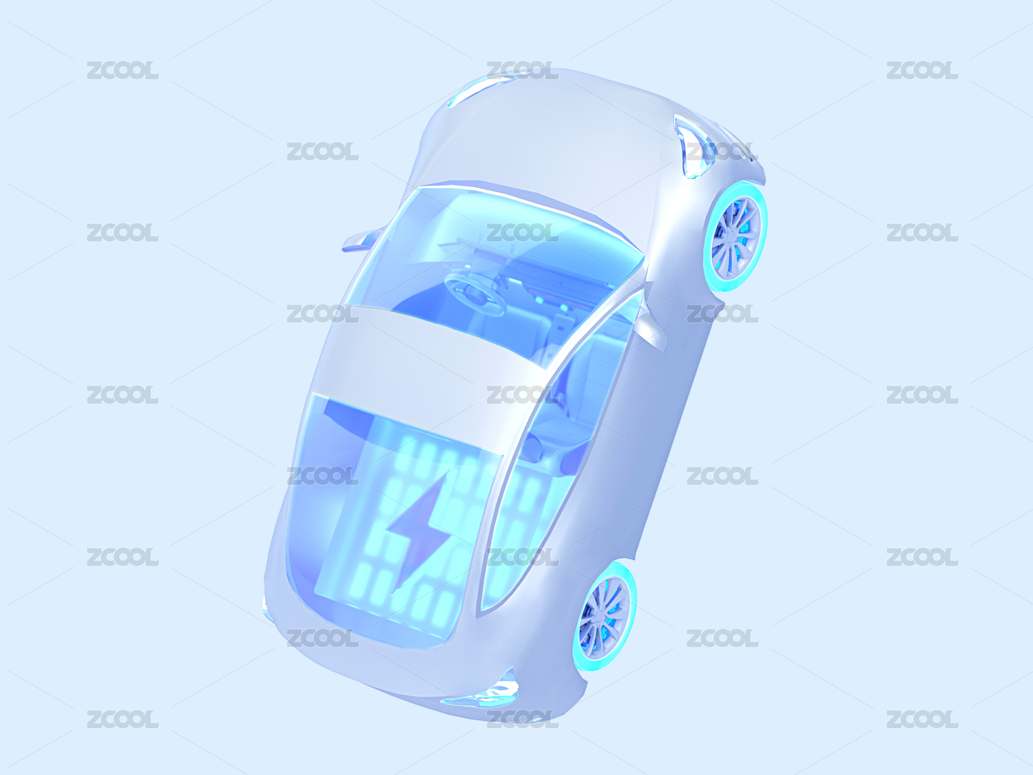 科技藍(lán)白新能源電動(dòng)汽車智能車機(jī)3D圖標(biāo)