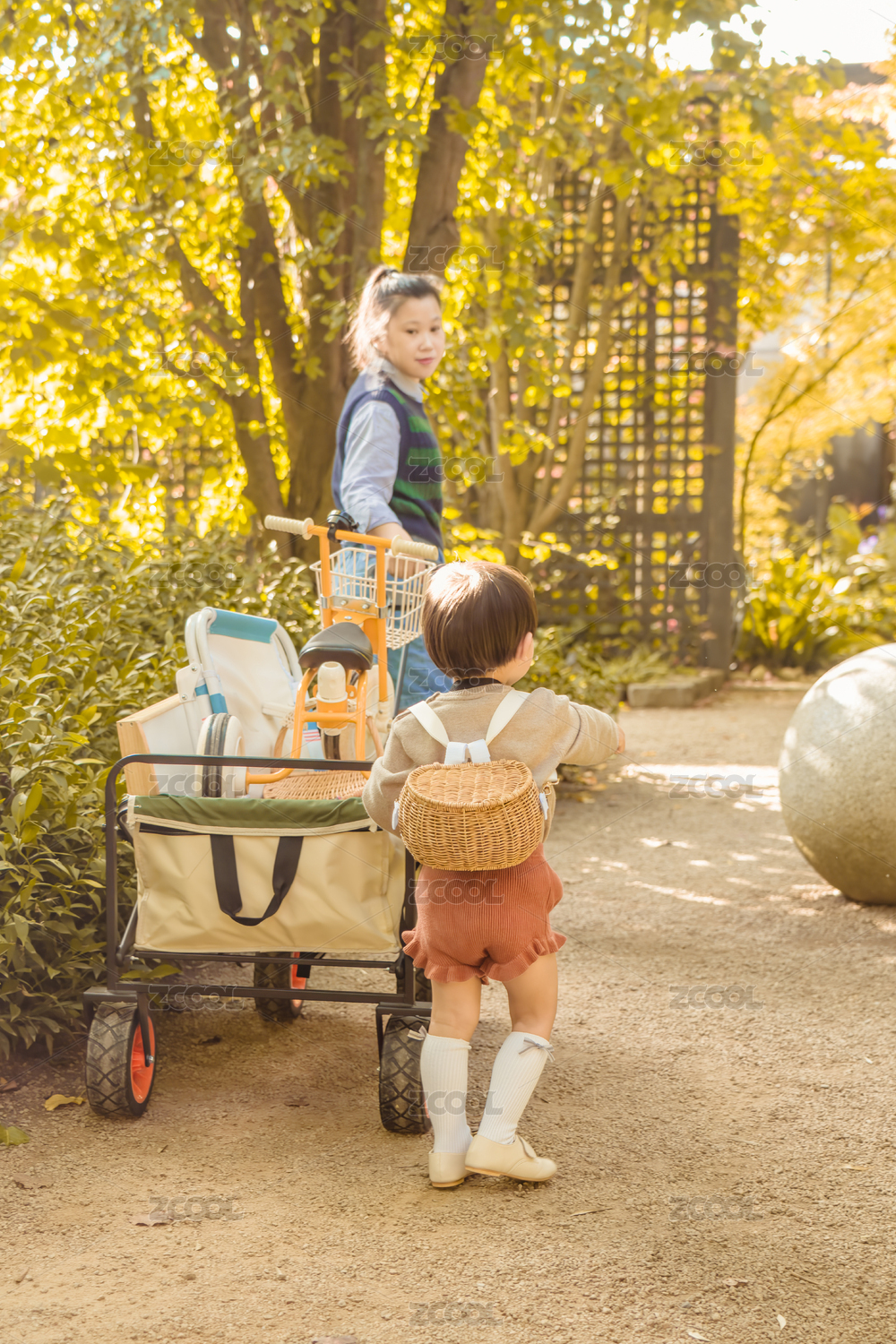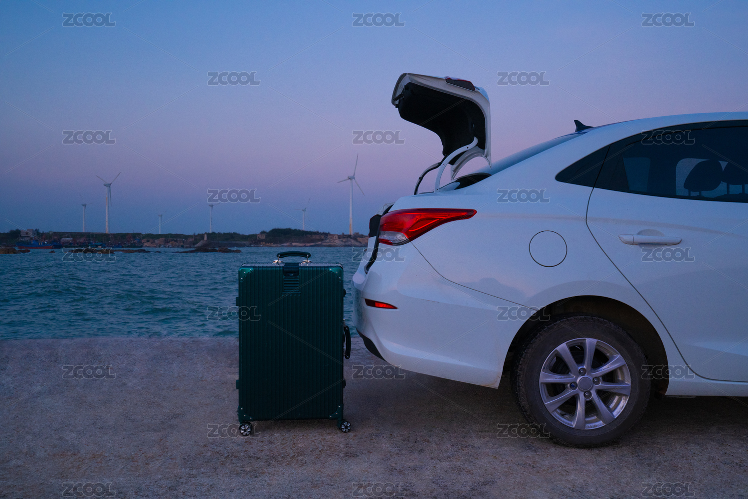 海邊風(fēng)車場(chǎng)旁有行李的小車