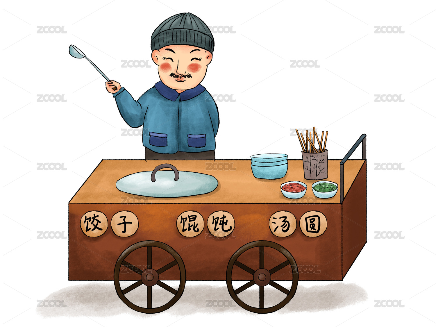 棕色移動(dòng)小車餃子復(fù)古冬天小商販