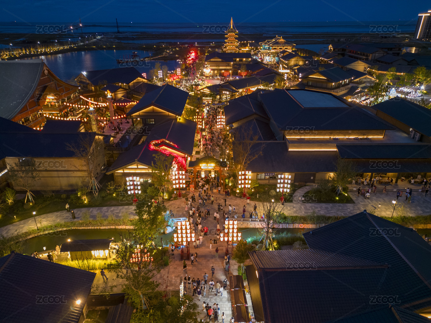 啟東啟唐城景區(qū)節(jié)假日旅游繁鬧的夜景