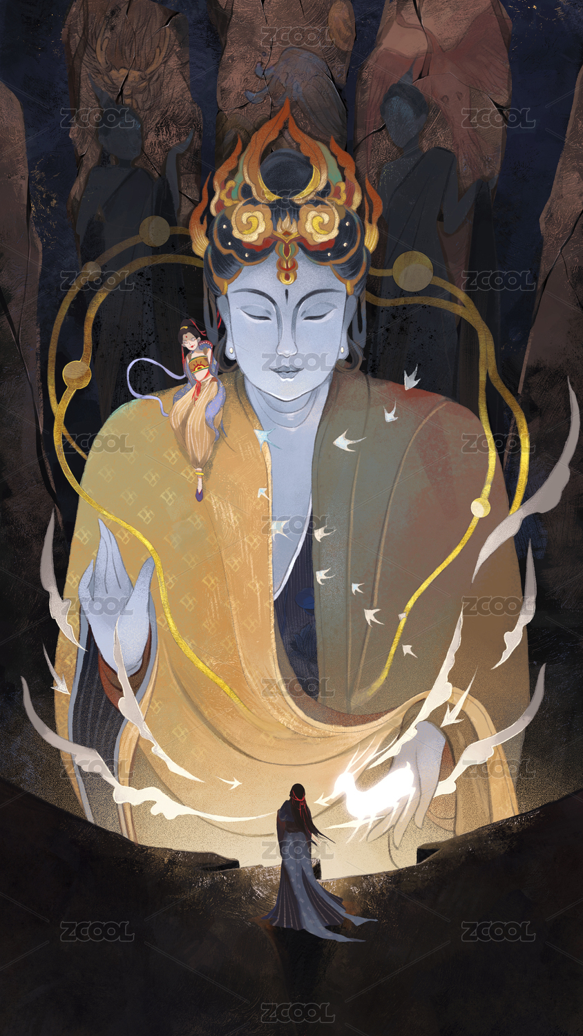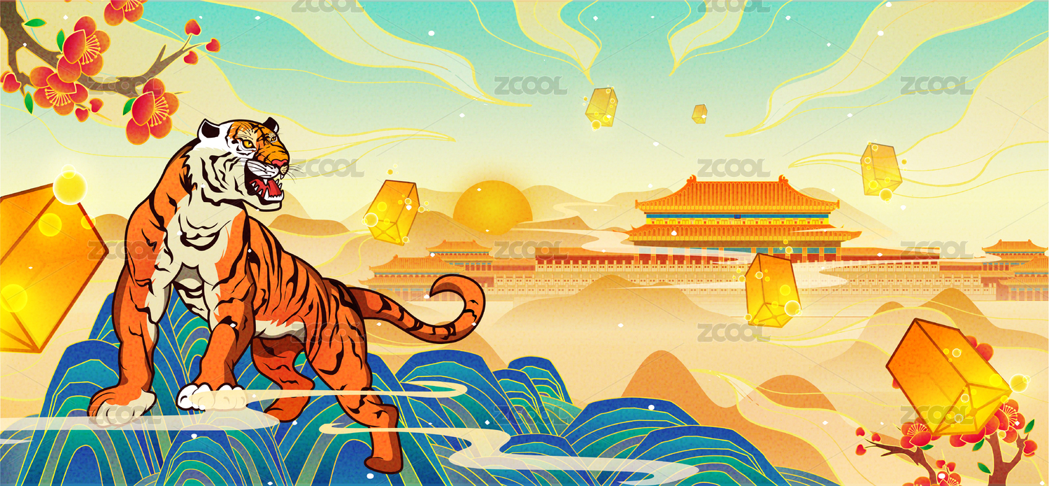 懸崖瀑布亭臺樓閣人間仙境日出美景